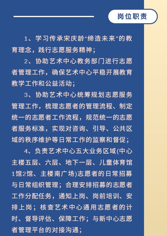 中国宋庆龄青少年科技文化交流中心艺术中心志愿服务运行管理岗招募啦!