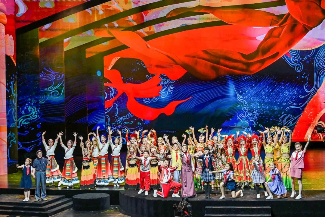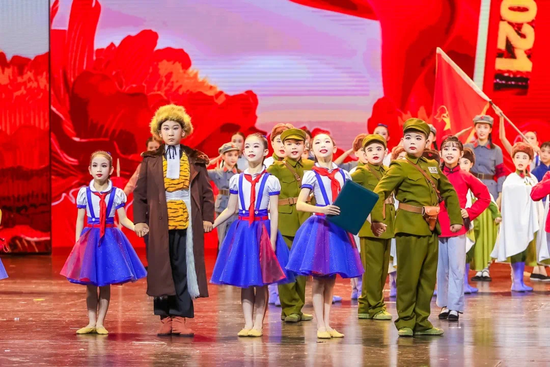 孩子们真情放歌,《妈妈教我一支歌》《中国中国鲜红的太阳永不落》《没有共产党就没有新中国》歌曲联唱将整场演出推向了高潮,为建党百年献上最诚挚的礼物,表达作为新时代的青少年要立志向、修品行、练本领,为实现中华民族伟大复兴的中国梦时刻准备着。