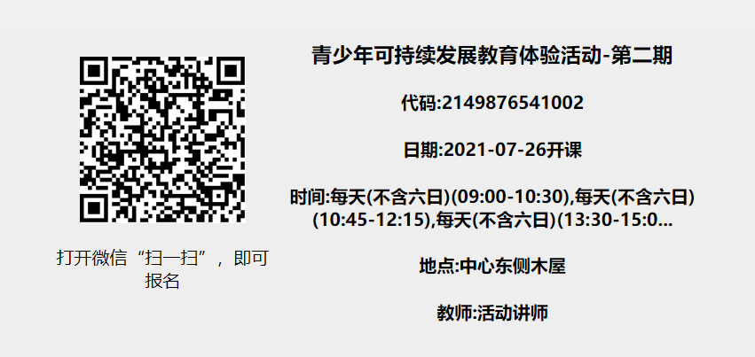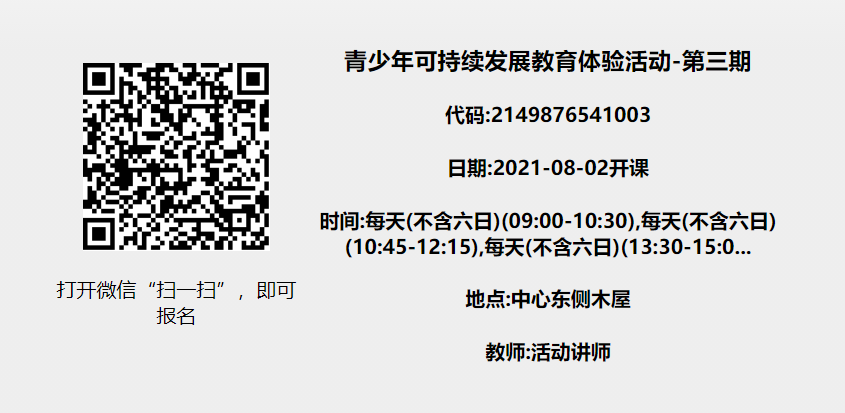 活动费用:人民币3500元/期(含活动费、学具、餐费、保险等,请自备饭盒和水杯哦)
