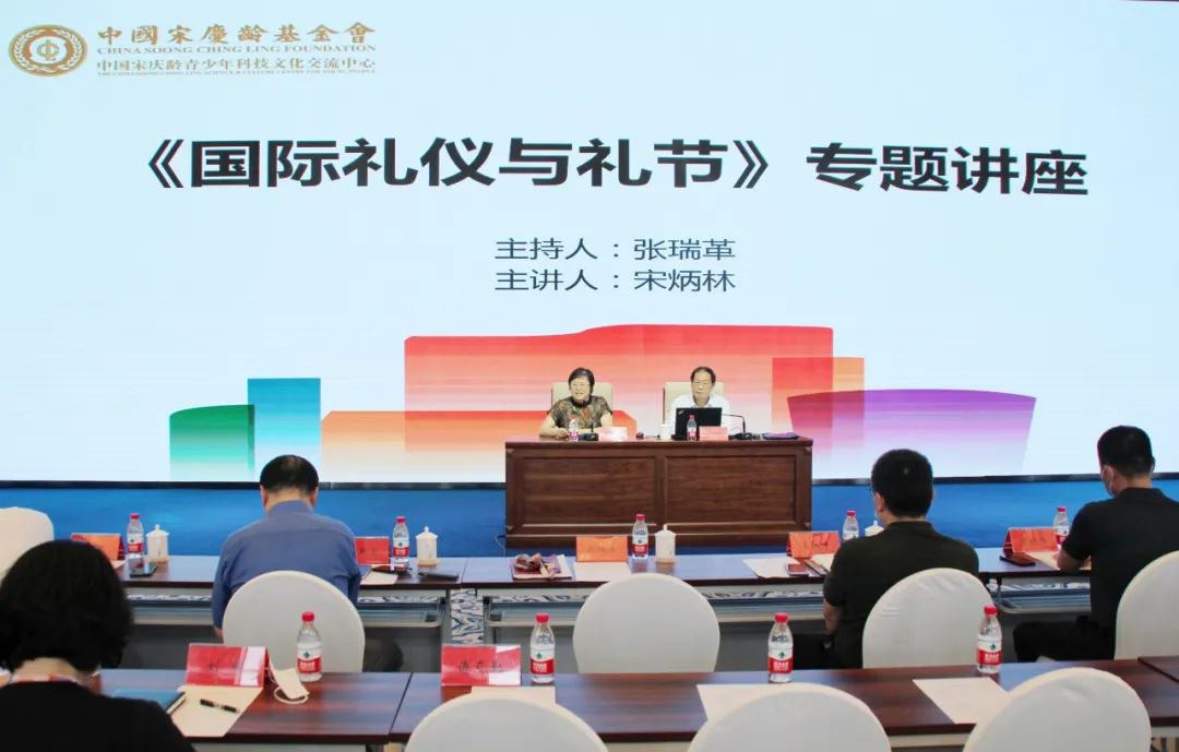 7月14日下午,中国宋庆龄青少年科技文化交流中心组织召开了《国际礼仪与礼节》外事专题培训会。中国宋庆龄基金会国际合作交流部副部长李晓峰、副部长房新文参加培训。中心副主任张瑞革主持会议。