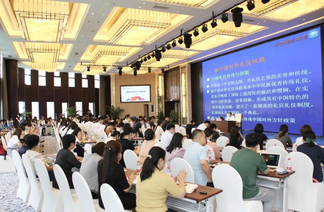 原外交部礼宾司副司级参赞宋炳林作为此次培训主讲,围绕新中国对外礼仪风格、国际礼仪应掌握的几个原则、礼仪活动安排基本做法与运营、对外交往中的交往礼仪与礼节四个方面,通过理论讲解与实例分析,向与会同志们进行了分享,内容生动全面,对基金会和中心的外事接待工作具有重要指导意义。现场参会人员就工作中遇到的实际问题与专家进行了热烈的交流讨论。