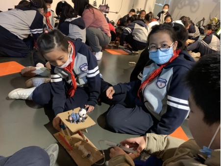 学生利用液压传动原理完成抬起重物的挑战,在劳动中不断创新。