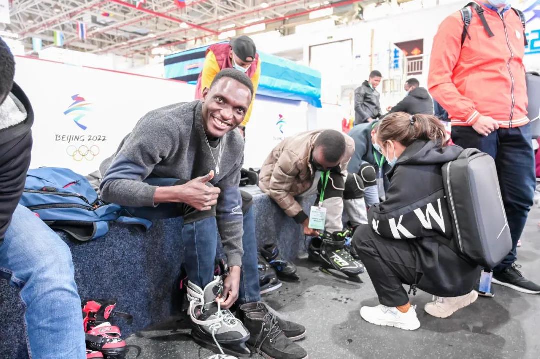 延庆是2022北京冬奥会的主要赛区之一。下午,非洲青年来到延庆冬奥冰雪训练场馆,听取了有关教练员关于大众参与冬奥的情况介绍,并亲身体验滑冰项目。不少人是第一次实地接触冰雪运动,感到非常新奇,对主办方的精心安排感到惊喜。之后,非洲青年与来自延庆部分中学的15位青少年代表交流,体验中国书法,书写中文“福”字,共同祝福北京冬奥会取得圆满成功。非洲青年们表示,在北京冬奥圣火迎回、冬奥会日益临近之际,切实感受到北京已做好充分准备,努力提供一流的竞赛场地和赛事服务,相信细致周到的服务保障工作将为各国运动员创造良好的参赛环境。