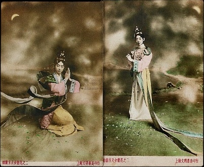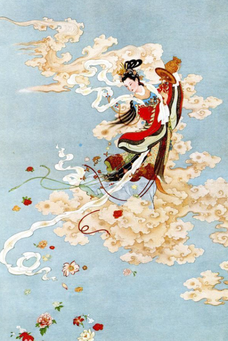 梅兰芳先生在一位友人家看到一幅《散花图》,见天女风带飘逸体态轻盈画的生动美妙,画中天女的形象,特别是风带使他产生了舞动的意念,又想到敦煌壁画的飞天仙女,从月夜少女愁思到飞天漫舞,他想把画意转为舞台形象,力求创造出形如敦煌飞天的神韵,以展示仙女之美。