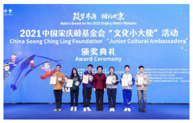 中国宋庆龄基金会“文化小大使”活动由中国宋庆龄基金会联合各海外中国文化中心共同组织开展,由中国宋庆龄青少年科技文化交流中心承办。活动自2021年6月开展以来,共收到海内外32个国家的209名中外青少年视频投稿。中外青少年克服疫情影响相聚云端,体验中华传统文化,讲述各自精彩故事,共同祝福北京冬奥会,用行动诠释了“筑梦冬奥 相约北京”的活动主题。