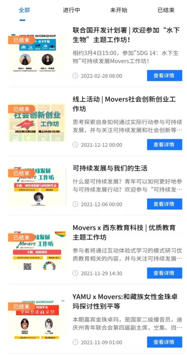 Youth4SDGs小程序及过往Movers工作坊概览