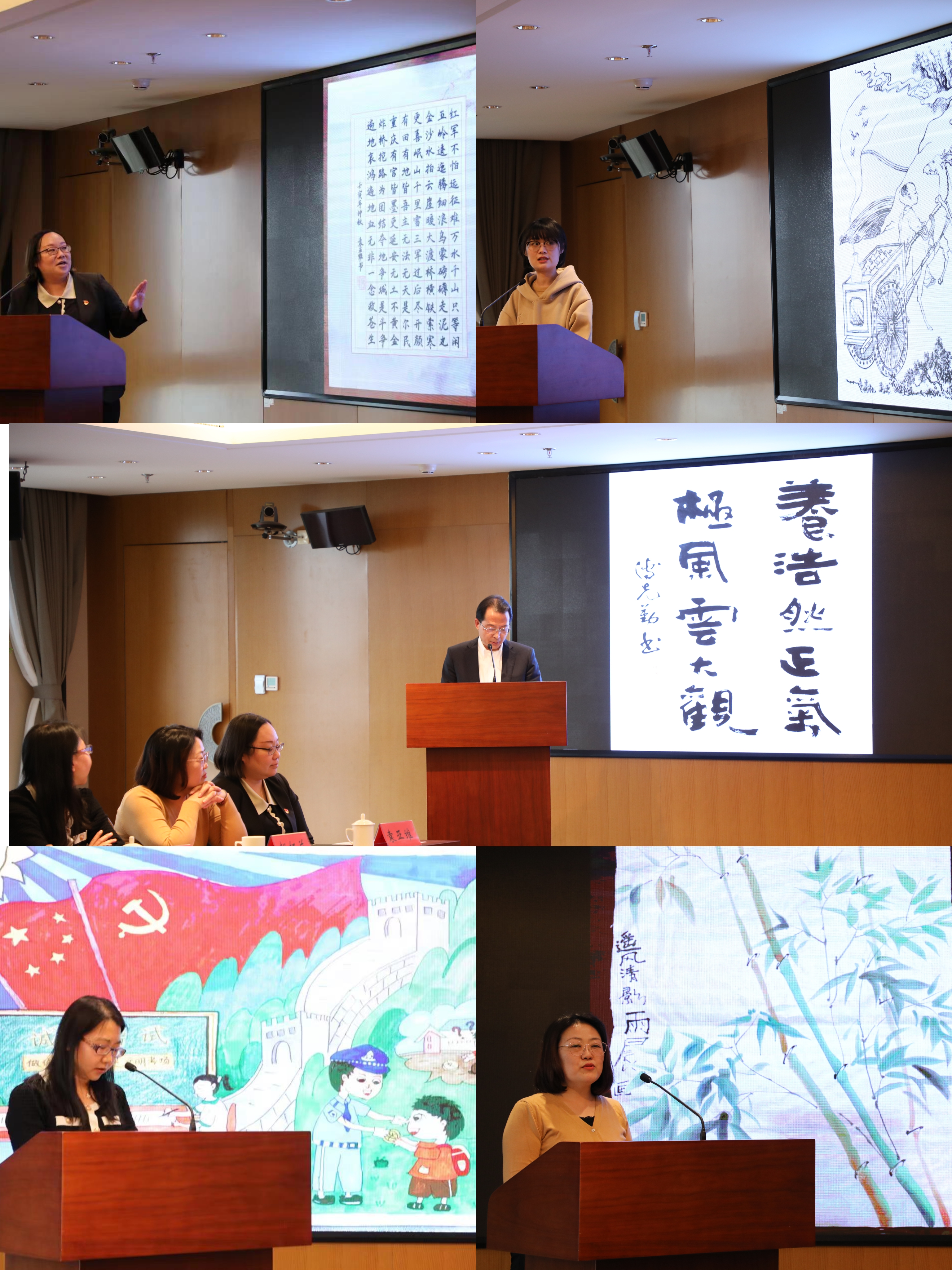 在家风作品分享展示环节,同志们纷纷介绍了具有思想性、艺术性和观赏性的弘扬清廉家风的书画作品。