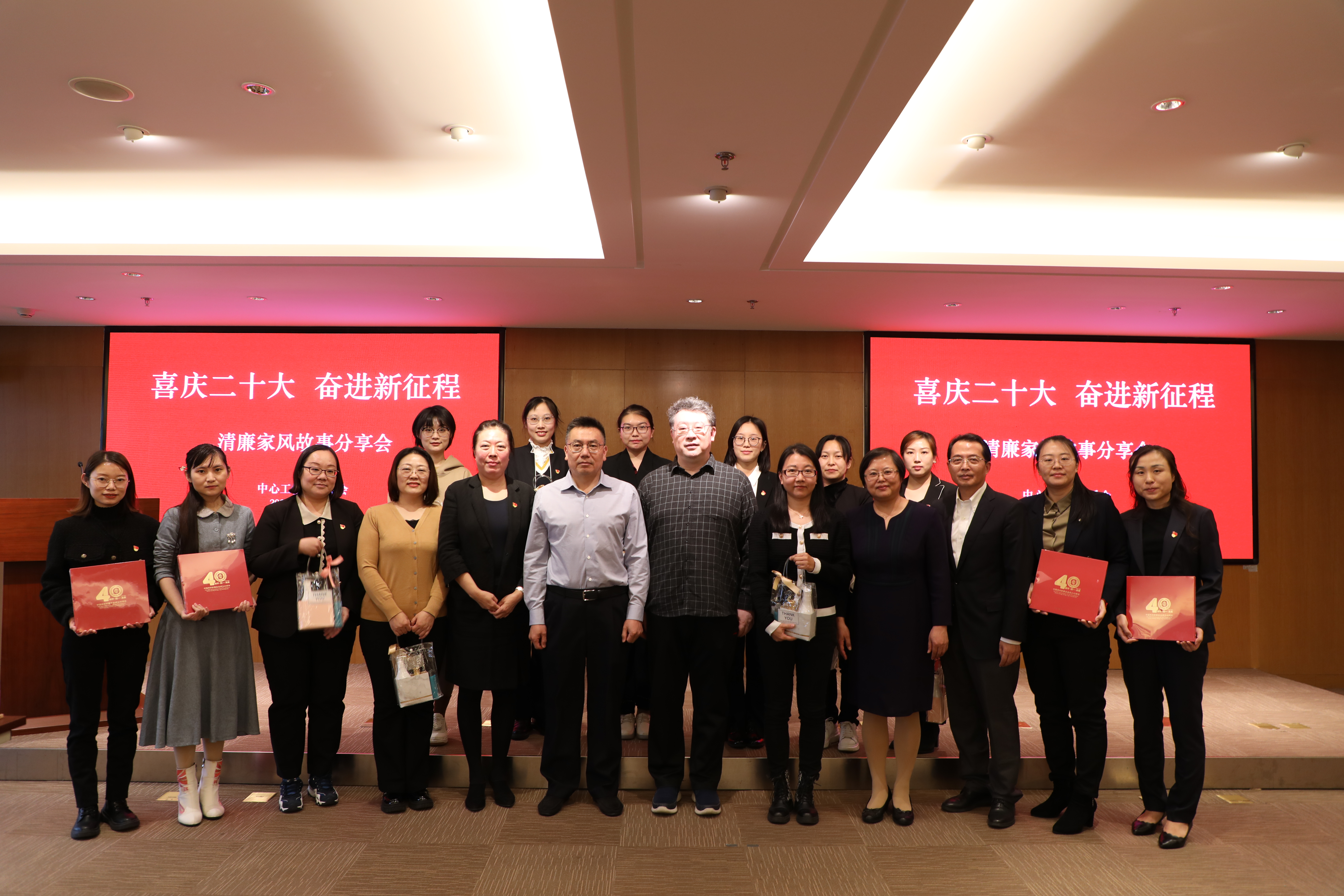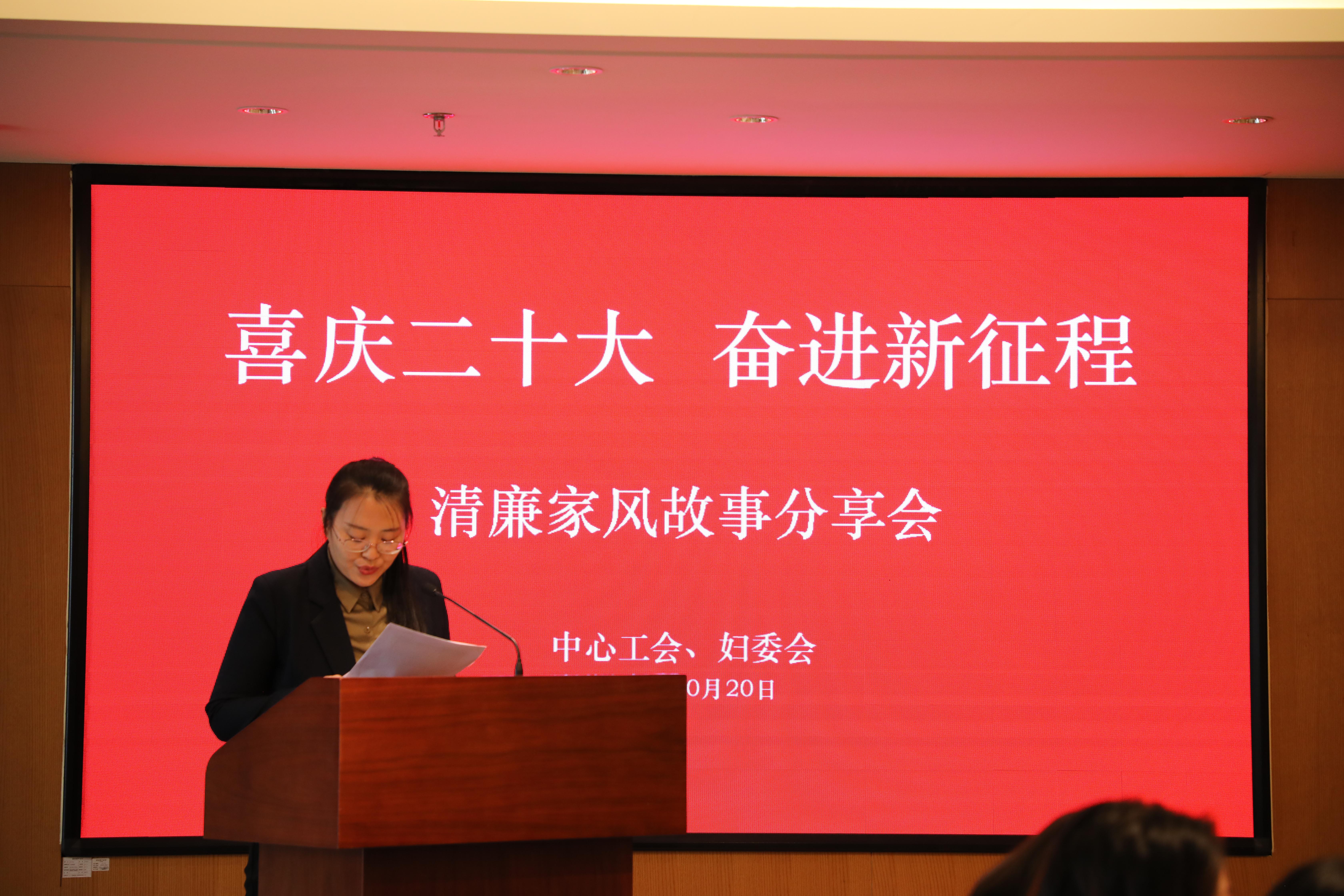 为深入贯彻习近平总书记关于注重家庭家教家风建设的重要论述,落实中央办公厅《关于加强新时代廉洁文化建设意见》部署要求,在党的二十大胜利召开之际,中心工会、妇委会于2022年10月20日下午举办了“喜庆二十大 奋进新征程”主题清廉家风故事分享会,中心主任郭新保,副主任苏洪涛、张瑞革出席活动并讲话。
