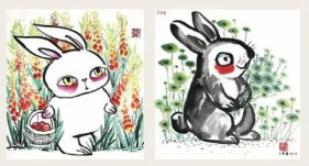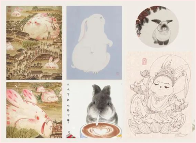 以生肖兔为主题的作品有很多,每个人的表现方式和风格都不同,同学们可以欣赏并选择感兴趣的风格进行临摹。