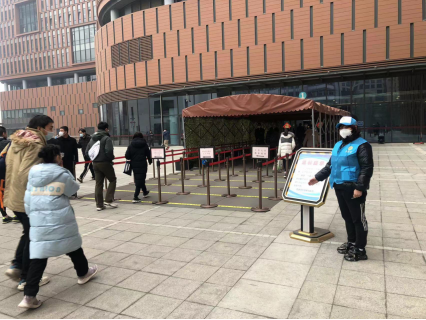 “请您注意脚下阶梯,减速慢行。请您戴好口罩,保护自己,保护他人。”每逢中心人流高峰时段,在中心广场阶梯上、在入口处,来自雷霆应急救援志愿服务队、传德儿童关爱中心团队的志愿者们,都会细心提醒学员和家长们。在他们的指引下,高峰期的入口井然有序。