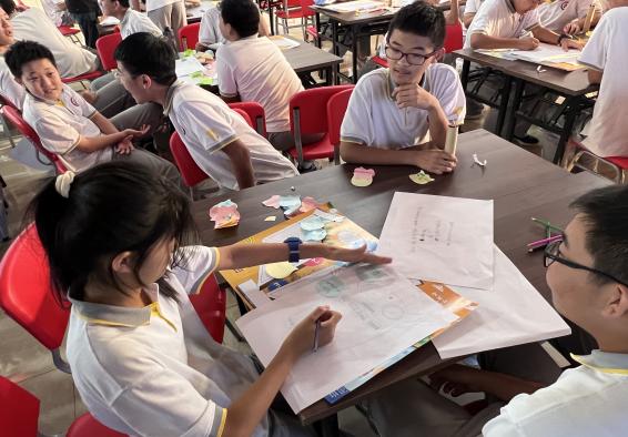 那么如何建设幸福河湖呢?这对青少年们是一个挑战。课程中我们运用了设计思维这种创新方法,引导青少年们以小组合作的形式一起从用户的角度发现和理解问题、重构问题、制定创意方案、分享成果。