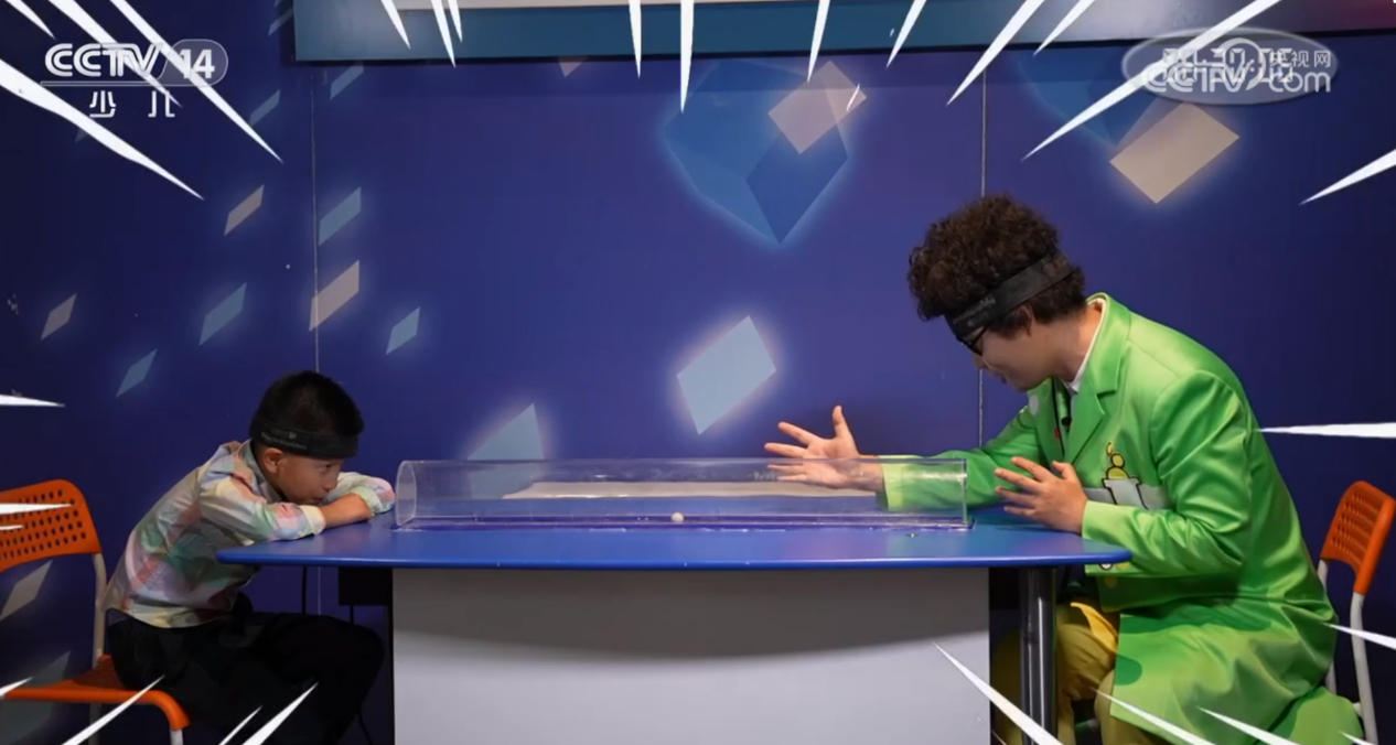 另外,视频中的意念对决展项位于中心二层创空间的“疯狂的像素”电子主题区,通过佩戴头戴设备,小朋友可以通过自己的意念将轨道中央的小球推到对面的球洞中,感受大脑活动的节奏。