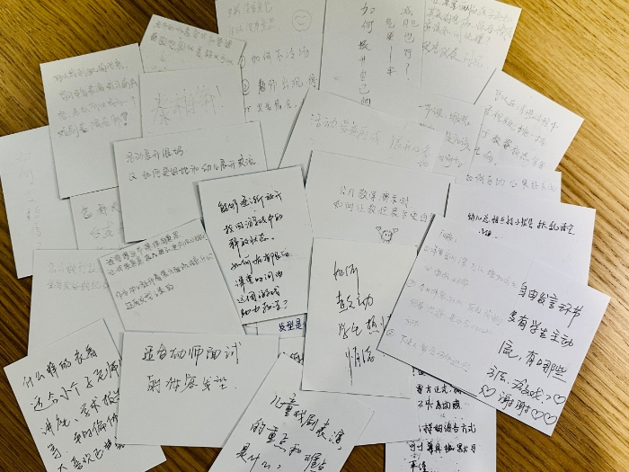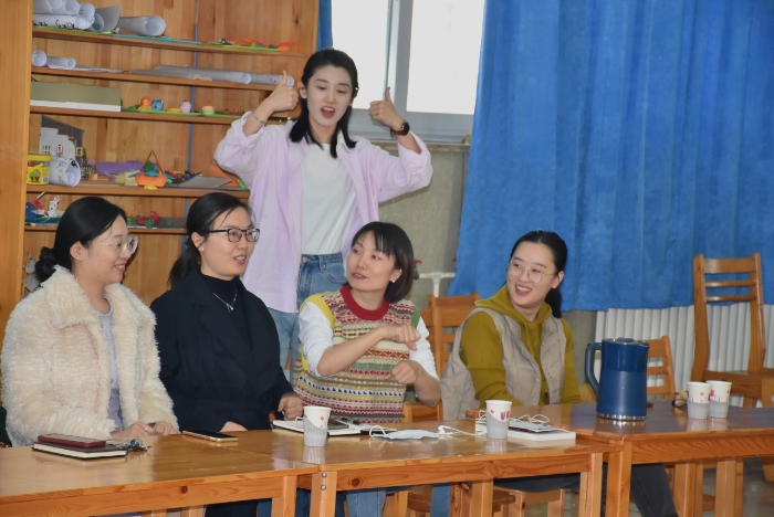 首次培训,冷静和王翔宇两位老师带领学前系师生进行了以“教师释放天性”为主要内容的戏剧练习,引导师生在肢体游戏中解放自我、展示个性。整场培训活动中,全系师生积极参与、认真讨论,对培训课程非常感兴趣,并提出了专业方面的困惑与问题,通过留言的形式进行了反馈。