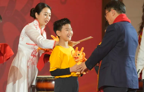 近日,中国邮政《甲辰年》特种邮票首发仪式在中国工艺美术馆(中国非物质文化遗产馆)举行。宋庆龄和平天使艺术团打击乐团的十名小学员演奏了中国传统鼓乐《滚核桃》,以昂扬的精神风貌、精湛的演奏技艺感染了现场的每一位观众。