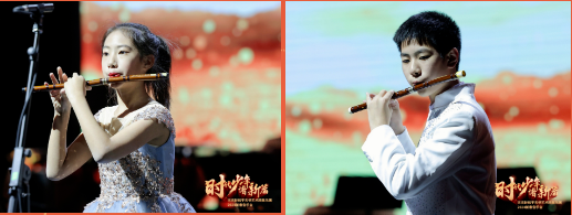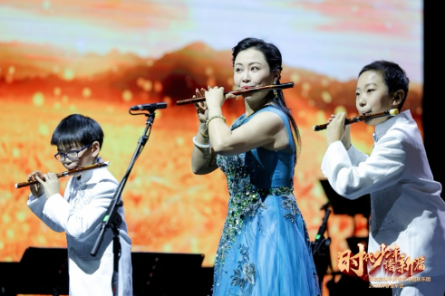 著名笛箫演奏家、中国音乐学院教授、博士生导师、硕士生导师陈悦教授与竹笛声部的小团员们共同演奏《扬鞭催马运粮忙》。