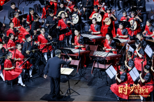 玉兔临门留福瑞,金龙报喜送吉祥。1月24日,宋庆龄和平天使艺术团民乐团“时代少年谱新篇”新春音乐会成功举办。整场音乐会通过三个篇章,从经典曲目到地方民乐,再到现代作品的创新演绎,展现了民族音乐的独特魅力。团员们的专注与热情展现出了新时代少年儿童的精神面貌和对传统文化的热爱与传承。