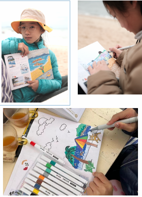 参观火山岛景区的彩虹山和爱的城堡后,学员们置身于奇妙的彩色世界中进行色彩写生创作,创作出了一幅幅精美的作品。