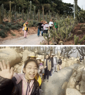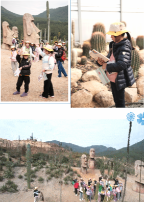 仙人掌王国,目前亚洲最大的生态多肉植物景观型主题植物园。在植物园内,大家探索搜寻研学手册里记录的仙人掌品种,进行植物学、地理学、历史学与美术的跨学科学习。