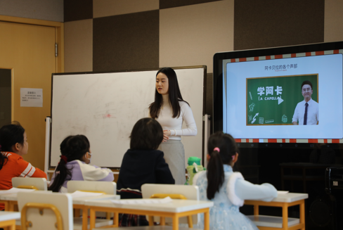 一首改编为无伴奏合唱的《小星星》从艺术中心520教室传来,演唱的小歌者们是一群刚刚接触阿卡贝拉的孩子们。在短短45分钟的公益体验课中,他们和老师一起完成了一首小作品。