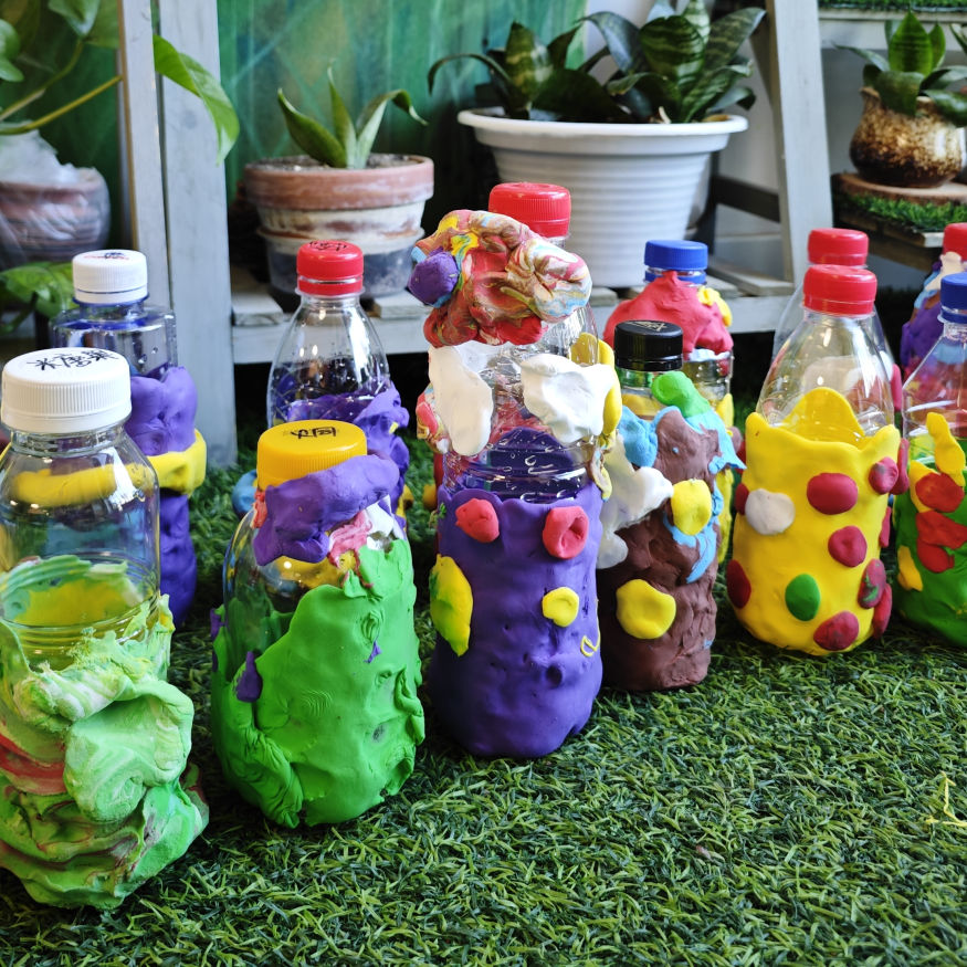 宋庆龄托育园结合托大班幼儿年龄特点,带领他们开展了“节能日瓶空改造”创意活动。把废旧空瓶子变身成小乐器、小花瓶、小小运动器材。活动中,托育园抓住“环保”教育主题,培养幼儿养成“不随意丢弃垃圾”、“垃圾分类投放”、“变废为宝”等良好生活习惯,从而进一步增强幼儿对环境保护的认识。幼儿在互动中,充分发挥创造力和想象力,将废旧瓶子变成有欣赏价值的艺术品,让废旧物品焕发出了新生命。