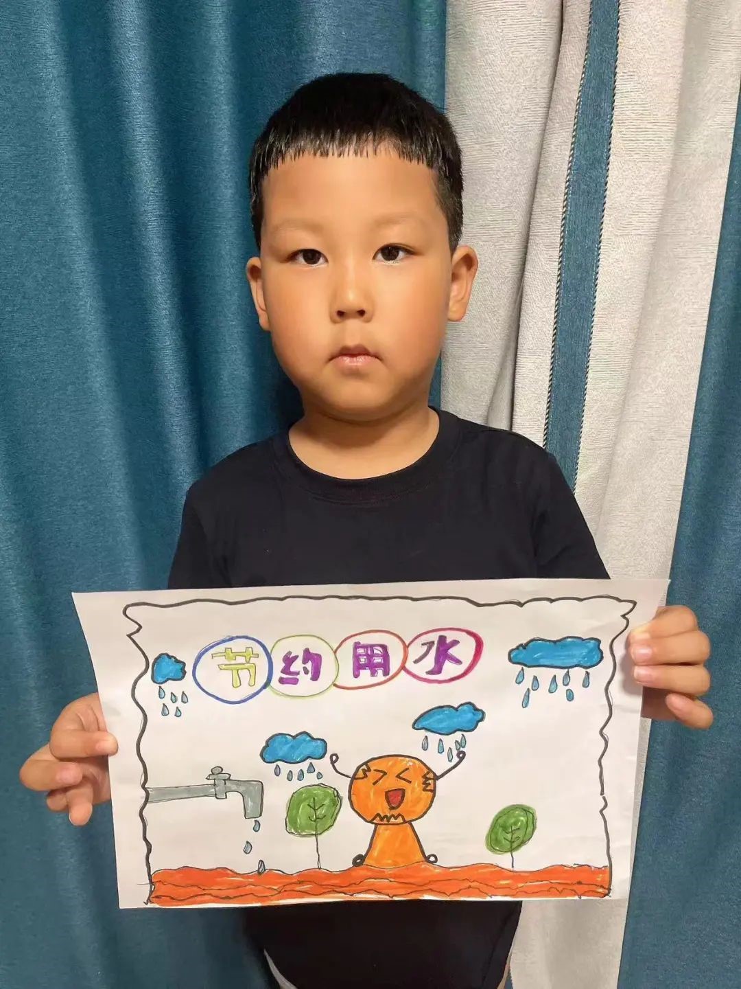 师生共同学习节约水电的重要性,一起制作折纸小水滴,贴在班级里,提醒小朋友们要节约用水。