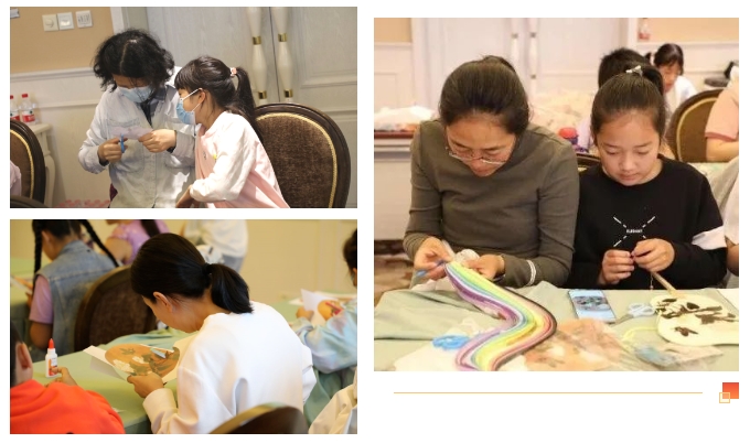 课程中,老师从人文雅集、海棠文化角度展开,讲解了海棠花的寓意、衍纸历史、团扇制作工艺等相关知识,激发了学员和家长们浓厚的兴趣。
