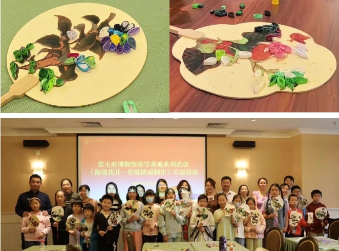 恭王府博物馆研学基地社教课进中心首讲《海棠花开——衍纸团扇制作》公益活动于5月25日顺利开展。在活动中,学员和家长们不仅深入学习了恭王府的园林布局与花卉知识,还领略了中华优秀传统文化的历史脉络与深厚渊源。