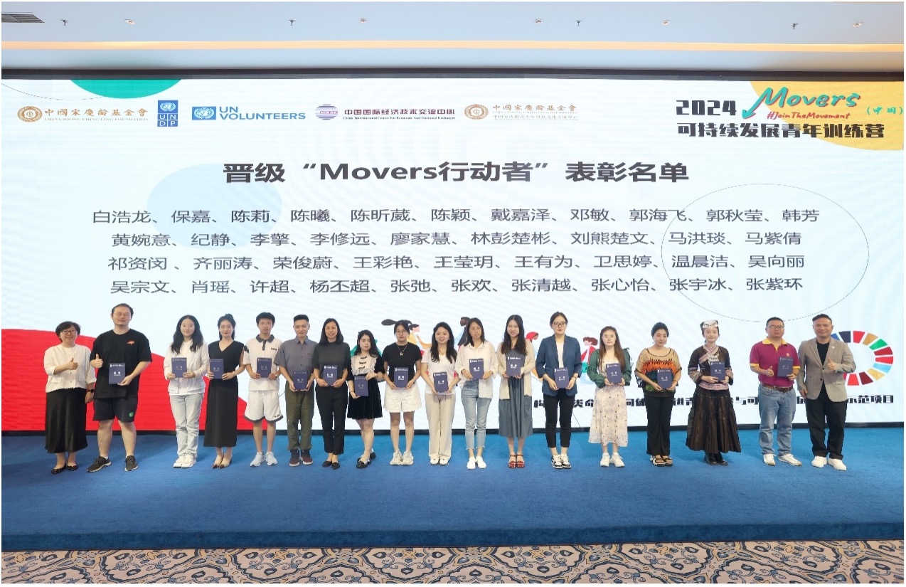 为培养青年的可持续发展意识、创新思维和适应21世纪的新技能,赋能其为社会可持续发展贡献创新解决方案,6月14日,2023年度Movers表彰大会暨2024年度Movers(中国)可持续发展青年营开营仪式在京举行。联合国开发计划署、联合国志愿人员组织、中国宋庆龄青少年科技文化交流中心、中国国际经济技术交流中心有关领导嘉宾以及来自全国20余个省、自治区、直辖市、特别行政区约130名青年代表参加活动。
