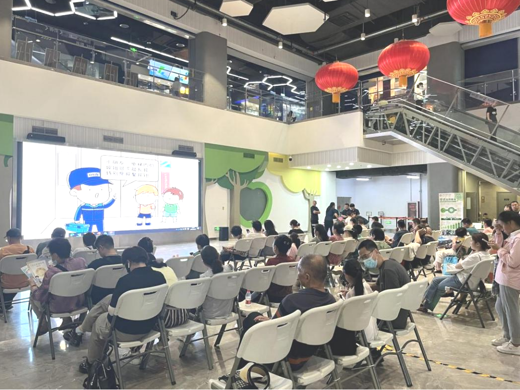 同时,中心还在中庭开展了家长公益课堂——安全乘梯科普知识宣讲活动,现场吸引约200余名学生及家长参与。活动特别设立授课区、模型实践区、礼品区三个区域,学生们通过课堂讲解、学习实践、趣味问答的方式了解电梯相关的科学技术,学习“安全乘梯”的知识,树立“安全第一”的意识。
