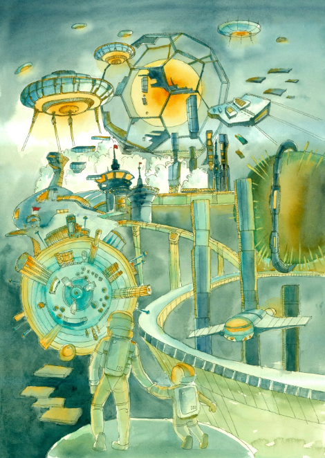 未来世界里,地球环境日益恶化,可持续能源逐步短缺。小规模利用太阳能已无法满足地球能源供应的需求,更大规模地利用太阳能计划开始实施。“戴森球”是由美国物理学家弗里曼·戴森在1960年就提出的一种理论。所谓“戴森球”其实就是直径2亿千米左右,用来包裹恒星开采恒星能源的人造天体。这是一个利用恒星做动力源的天然的核聚变反应堆。中国率先研发出“戴森球”,带领人类走向深空,探索未知的宇宙。