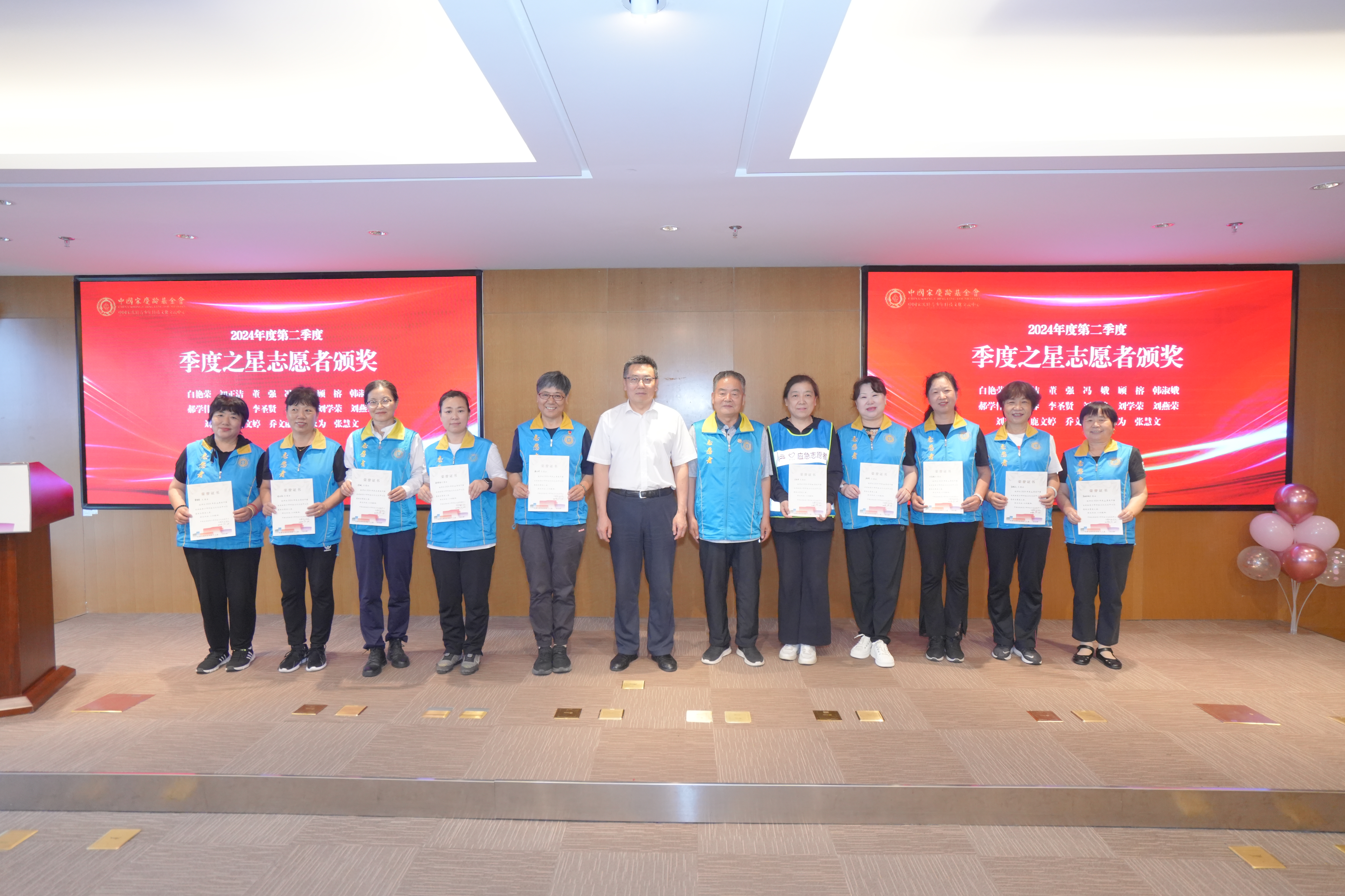 第一、二季度的季度之星逐一上台,苏洪涛副主任和志愿专家为获奖志愿者和志愿服务工作者颁发了证书和慰问品,并合影留念。