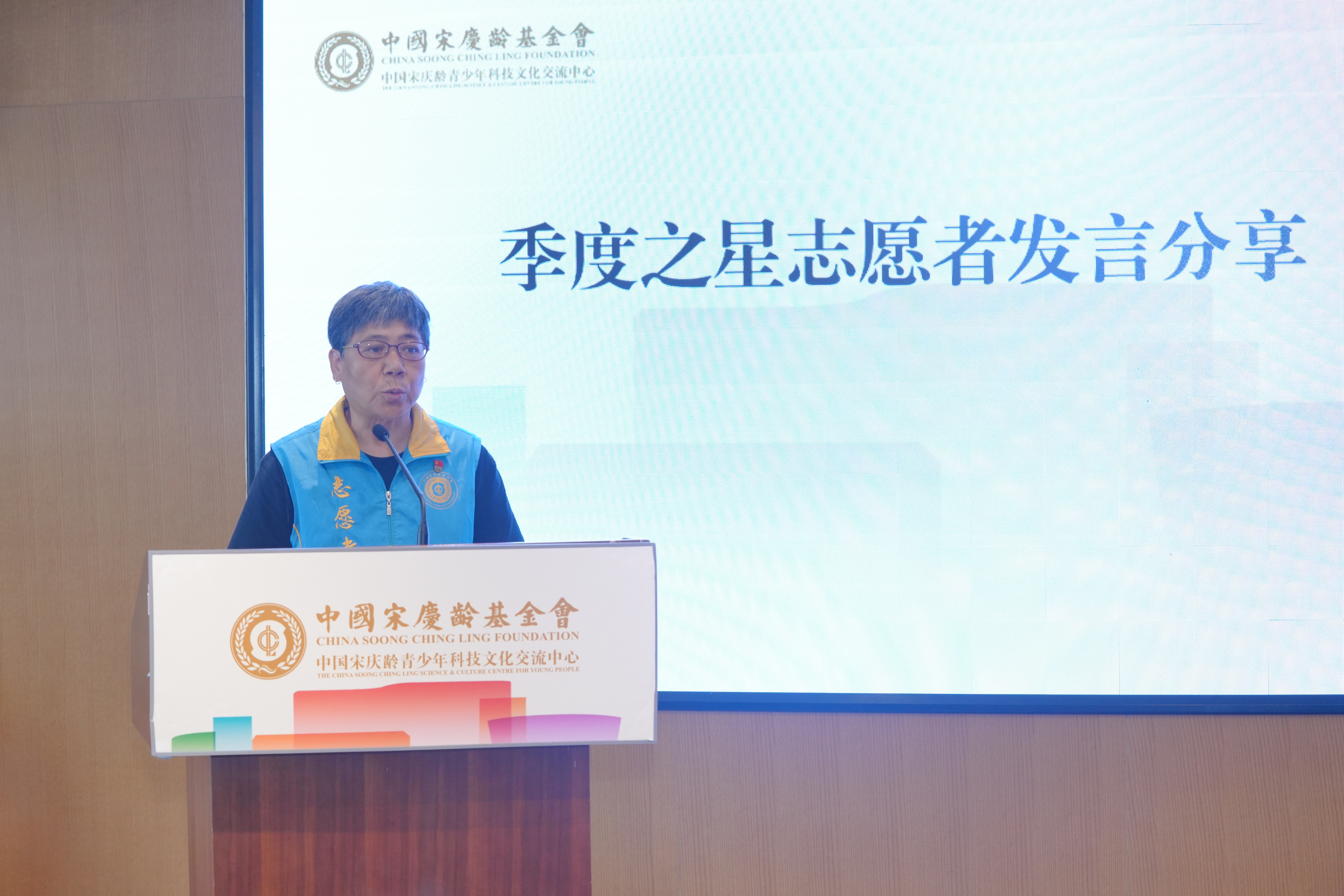 来自体验中心、艺术中心、交流中心、幼教中心的四名志愿服务工作者分别介绍了志愿服务工作的保障情况,对志愿者们的辛勤付出表示衷心感谢。