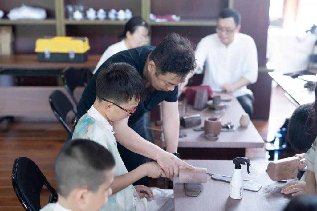 湖州不仅以茶文化著称,其紫砂工艺同样享誉世界。在工艺美术老师的引导下,大家亲手制作了专属于自己的紫砂杯,学习紫砂非遗技艺。跟随透花糍唐果子茶点非遗制作技艺传承人陈晓冬老师学习非遗唐果子制作,一颗颗盛夏蜜桃在营员们手中呼之欲出。课程将茶果子与紫笋茶完美搭配,重现盛唐的精致生活。