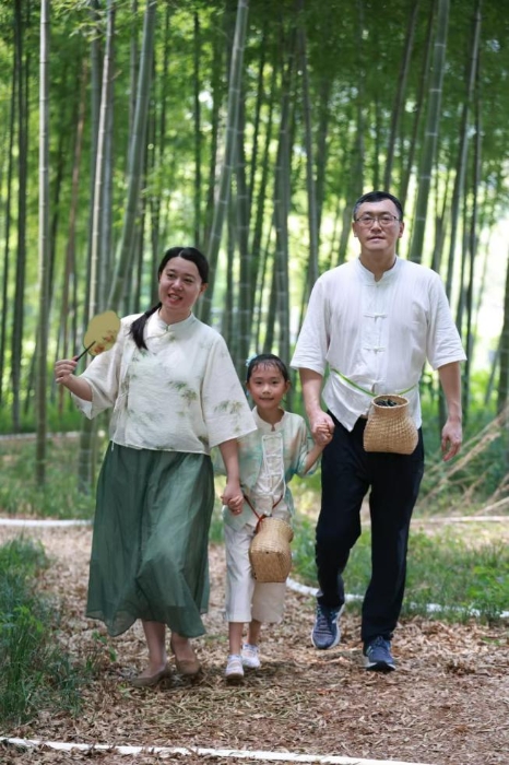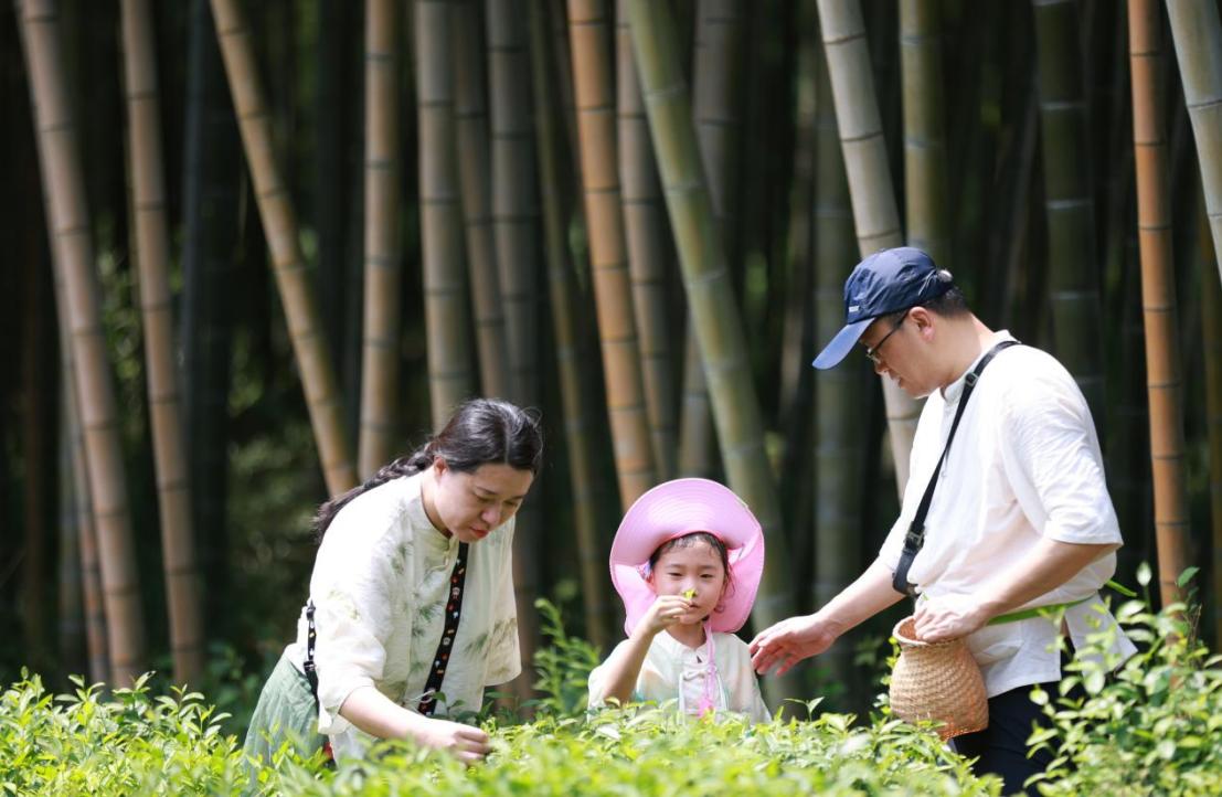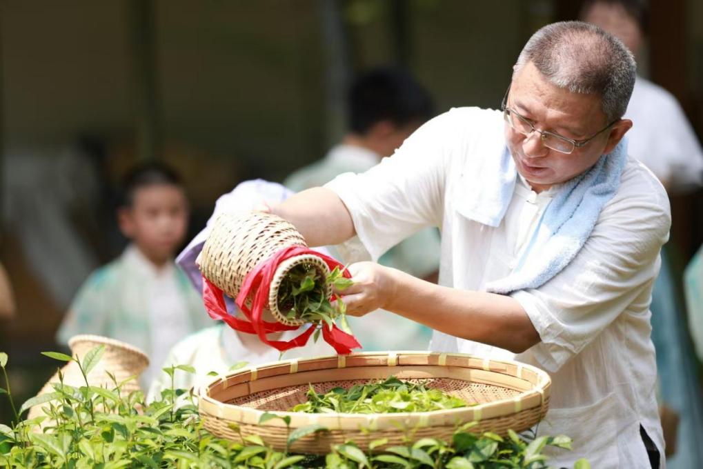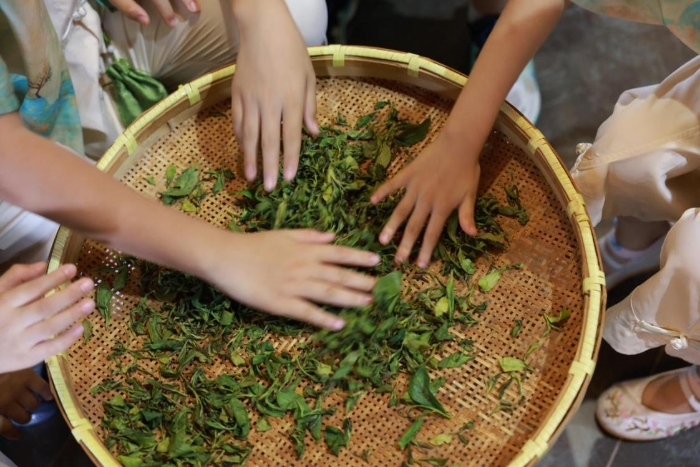 “竹下忘言对紫茶,全胜羽客醉流霞”。在中国茶文化的重要发祥地——湖州长兴,亲子营的成员们首先来到了大唐贡茶院。在这里,他们不仅了解了唐代贡茶的历史文化,还亲自体验了从采摘到制作的全过程。小茶人与父母一起背着小茶篓,在大唐贡茶院院长、紫笋茶制作技艺非遗传承人林瑞炀的教授下,从古茶园到制茶所,亲手体验蒸青、炒青等不同杀青方式,感受茶叶在手中翻飞的变化,体验了一片叶子到一杯香茗的神奇蜕变。