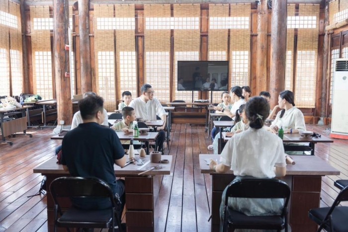 本次研学中,组织营员实地考察大唐贡茶院,让青少年对生物多样性、环境保护、土壤特质有更直观认识。研学营将茶文化融入语文、历史、地理、美术等学科,设计主茶画创作环节,进行多育融合教学。鼓励营员围绕茶文化开展研究,如茶的历史、种类、茶道等,培养他们的研究能力和创新思维。通过阅读与茶相关的文学作品,让营员了解茶在文学中的地位和象征意义。在科学课程中,研究茶叶的化学成分和保健功能,体验蒸青、炒青等不同杀青方法,培养营员的科学探究能力,同时也是劳动教育的具体实践。