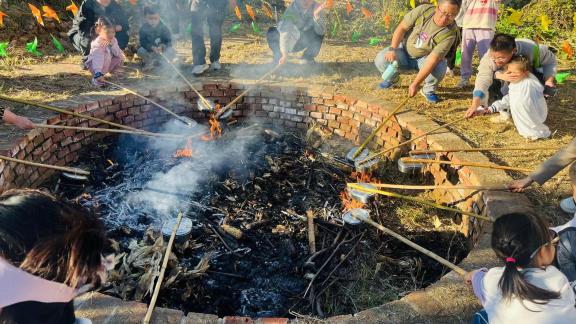 踏入土地精灵部落,小营员参加制作爆米花、挖红薯等趣味活动,锻炼动手能力,体会劳动乐趣。