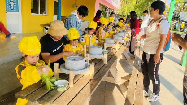 在玉米国王的邀请下,小营员们来到玉米王国中,体验丰收的喜悦,一起为玉米脱粒,磨玉米浆、制作玉米食物,与家人共享美食,感受劳动甜美成果。