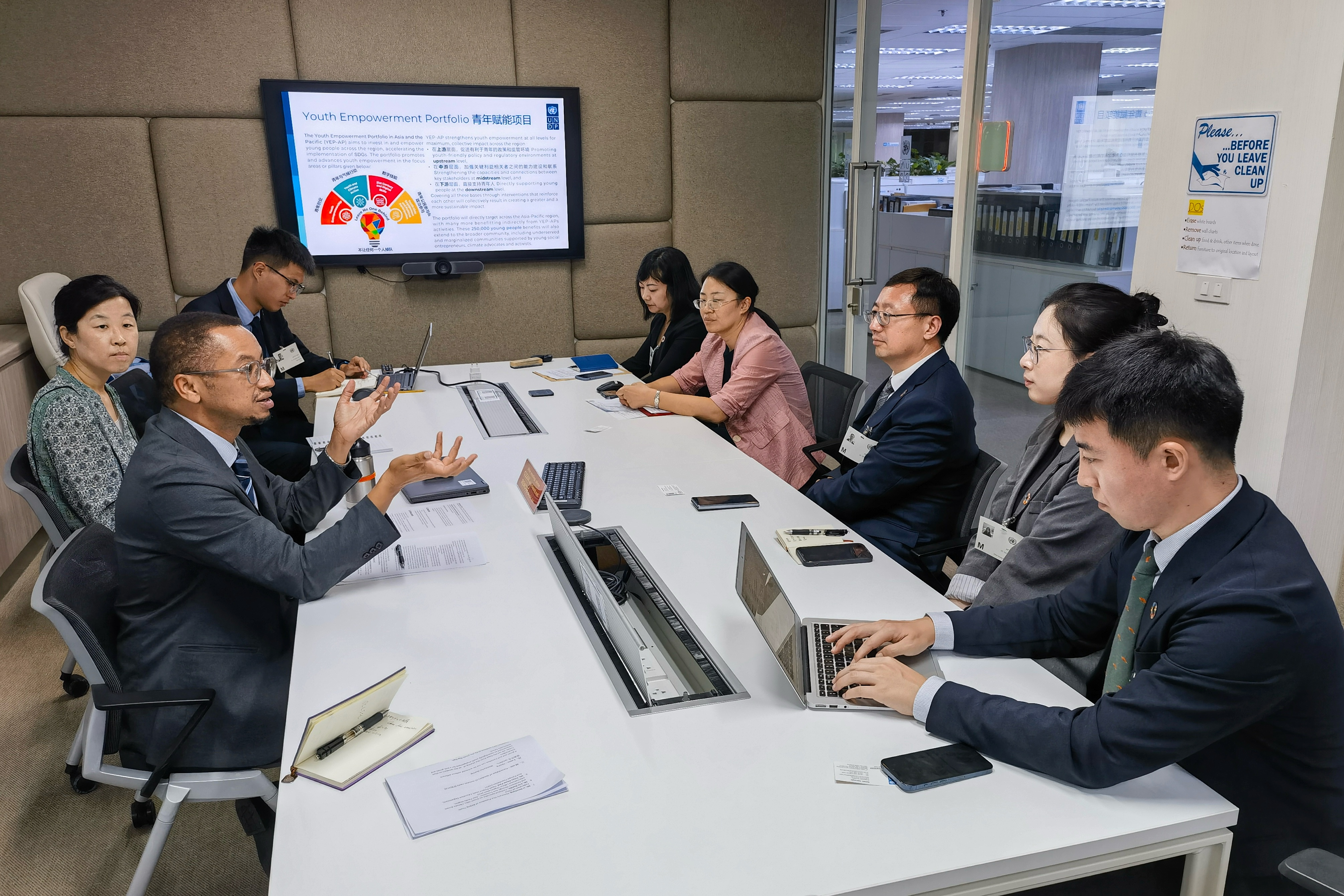 论坛结束后,代表团一行与联合国开发计划署曼谷区域中心青年发展专家本尼艾姆先生、联合国志愿人员组织亚太区域办公室副主任朴美延女士等座谈交流。联合国各机构官员对于中心在过去几年双方合作中的努力表示肯定,高度赞赏在青少年可持续发展教育创新领域的探索,感谢在实现联合国可持续发展目标和对全球志愿服务事业发展提供的持续支持。与此同时,双方就未来合作的深入发展进行了积极的探讨,并对进一步提升双方伙伴关系寄予了深厚期许。