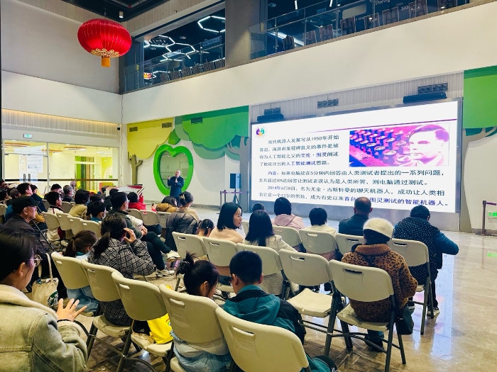 清华大学精密仪器系董景新教授在中心中庭以《机器人会统治自然人吗?》为题开展讲座,通过深入浅出的讲述和丰富多彩的多媒体案例,让现场青少年及家长在新奇有趣的氛围中了解到机器人发展现状与未来。