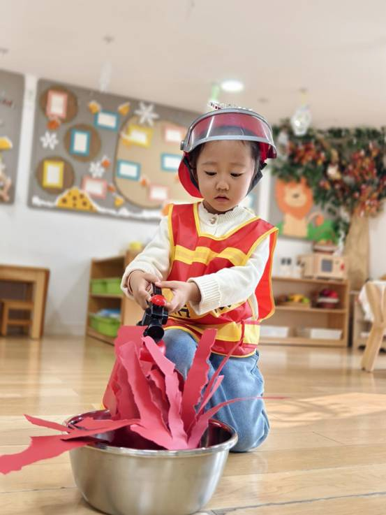 托班根据幼儿的年龄特点,将安全教育融入幼儿一日生活,开展丰富多样的安全主题活动。以主题绘本阅读、认识消防标识和消防器械、参与消防模拟游戏等活动形式,让幼儿认识标志,学习消防器械的正确使用方法,了解火灾发生的原因以及其危害,学习火灾逃生方法。