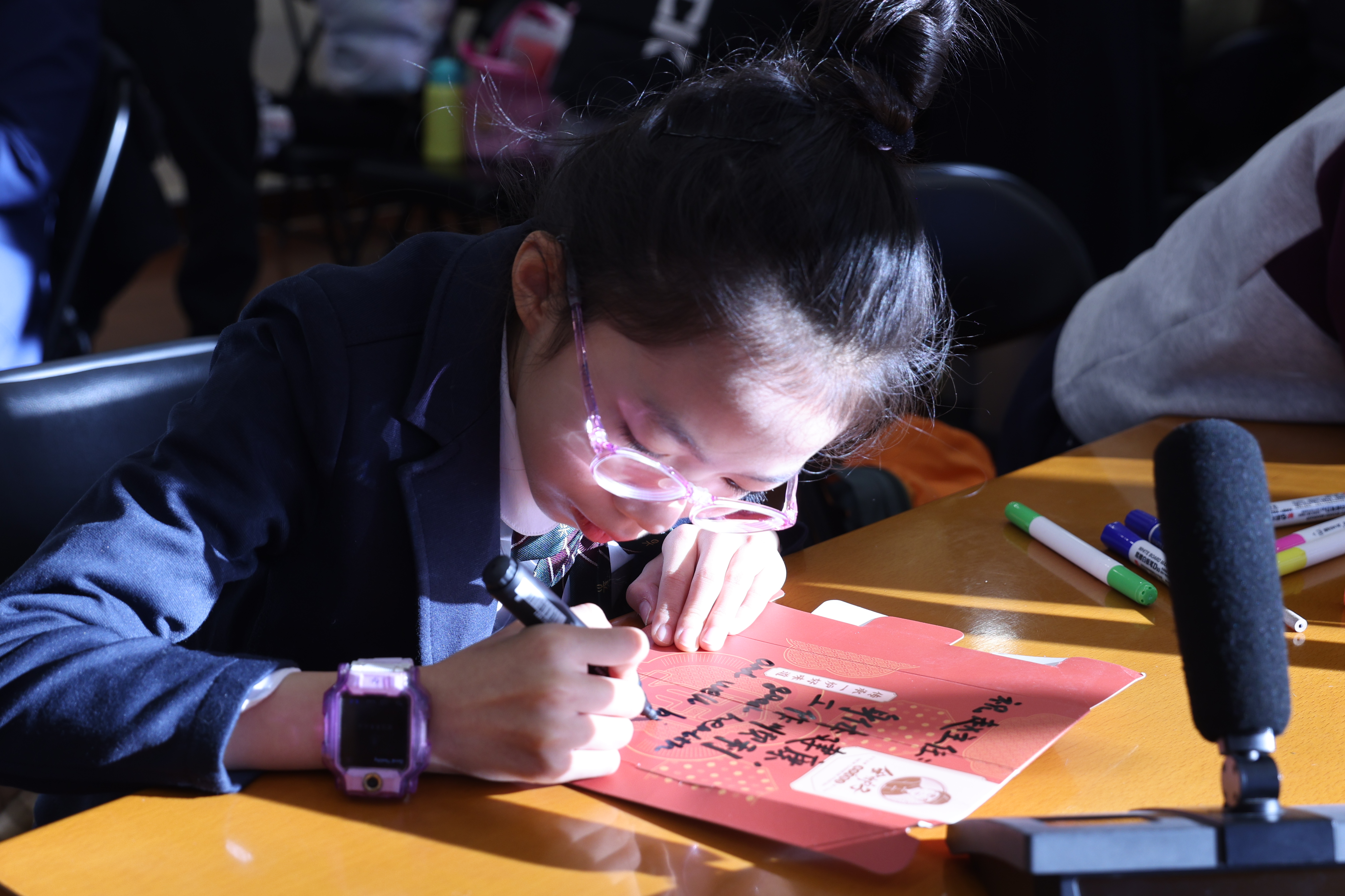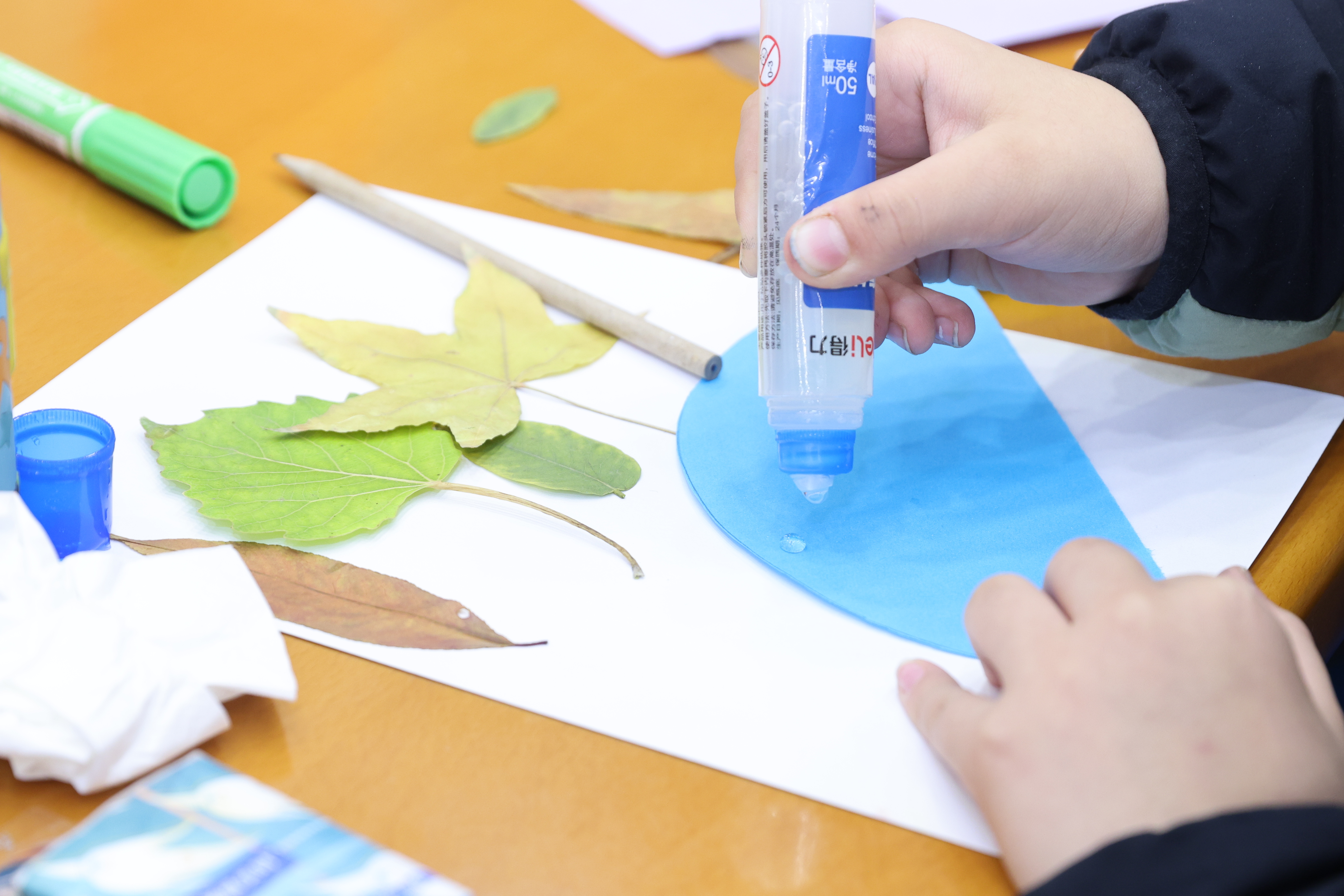 在“制作可持续贺卡”环节,大小志愿者们通过裁剪、绘画自己收集的可循环利用材料制作成满载美好祝愿的贺卡并相互赠予。