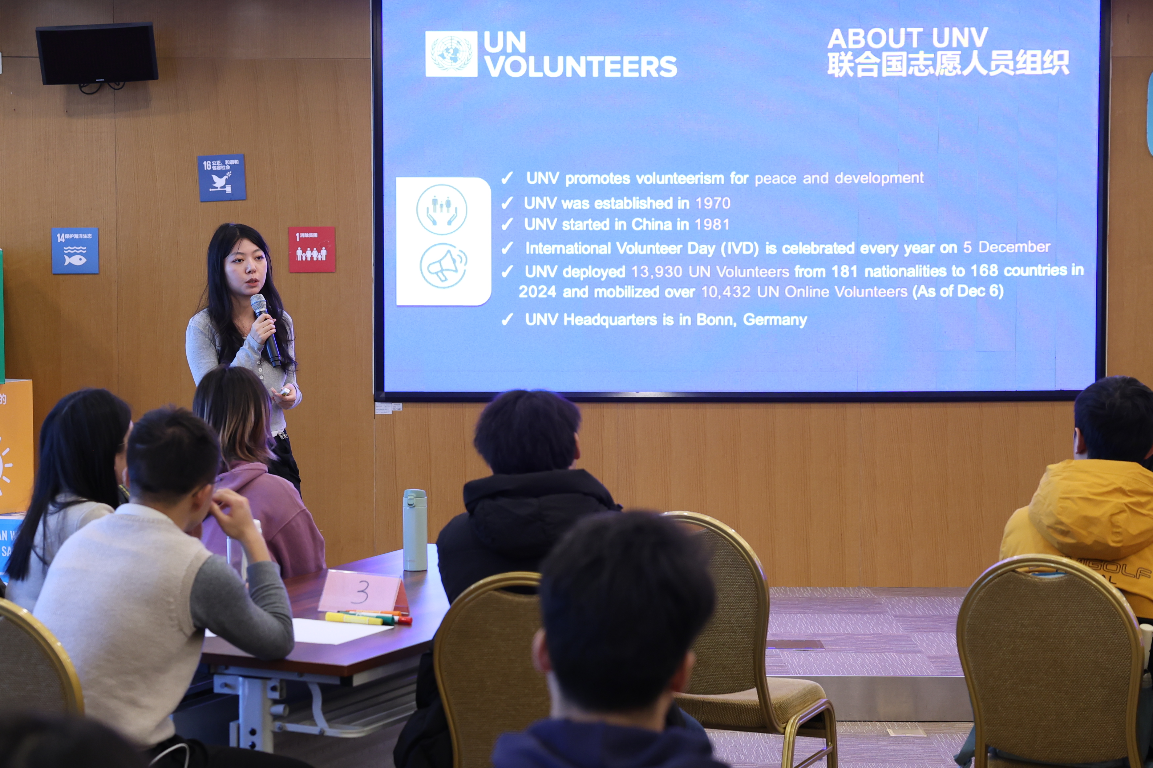 会上,联合国志愿者向大家详尽介绍了“联合国、联合国志愿人员组织及2030年可持续发展议程”,大学生志愿者们纷纷表示,经过聆听分享,更进一步了解了联合国可持续发展目标和更加多元认识了志愿服务方向。
