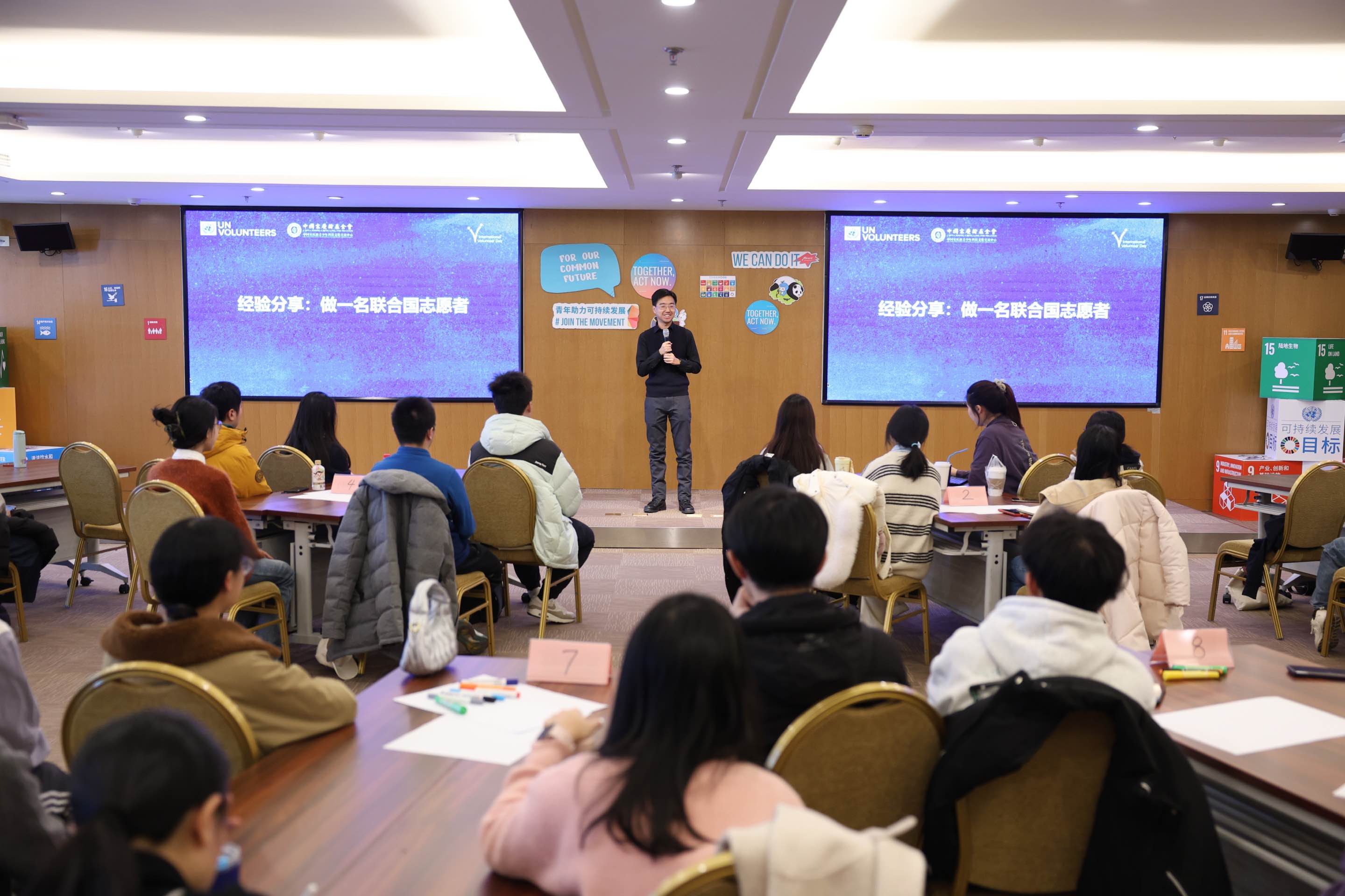 服务于不同联合国机构的联合国志愿者们向在场的大学生志愿者们分享了“做一名联合国志愿者”的经验与心得,并呼吁大学生志愿者们未来成为联合国志愿者的一员,为推动实现可持续发展目标而共同努力!
