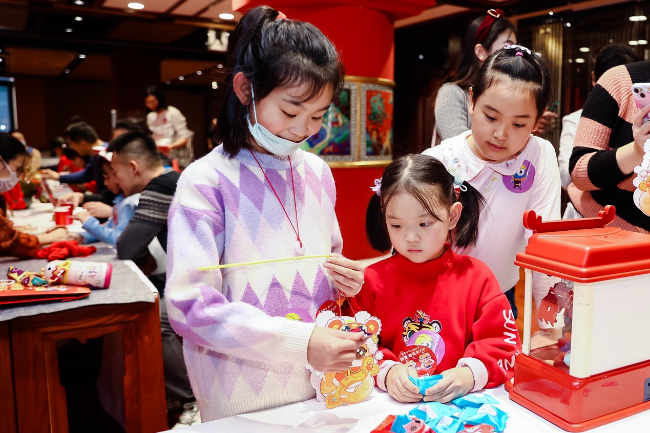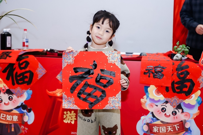 今年是“春节”列入联合国教科文组织人类非物质文化遗产代表作名录后的首个春节,活动特别设置了丹青贺岁、木版年画、祥蛇投壶挑战、中医香囊制作、五谷丰登过大年等非遗特色体验内容。参与游园会的王同学(9岁)兴奋地表示,“今天我学到了很多春节的传统习俗,还亲自参与了年俗活动,特别是在描绘年味长卷、制作木版年画和现场写‘福’字时,感觉特别有意思!”