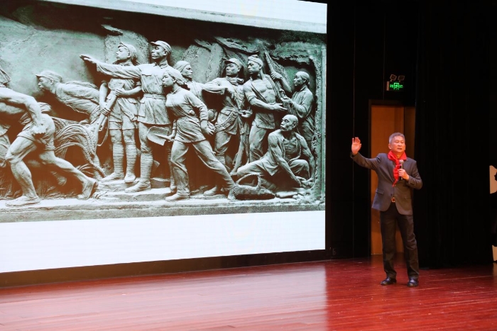 在《我们是共产主义接班人》的歌声中,活动在海棠剧场拉开序幕。活动特别邀请了雕塑家张松鹤、陈淑光之子,中国文物保护基金会抗战遗迹保护专项基金会副主任、惠州抗战历史研究会副会长张方先生作为主讲嘉宾,以公益志愿者的身份开展“镌刻永恒·传承红色基因”讲座。