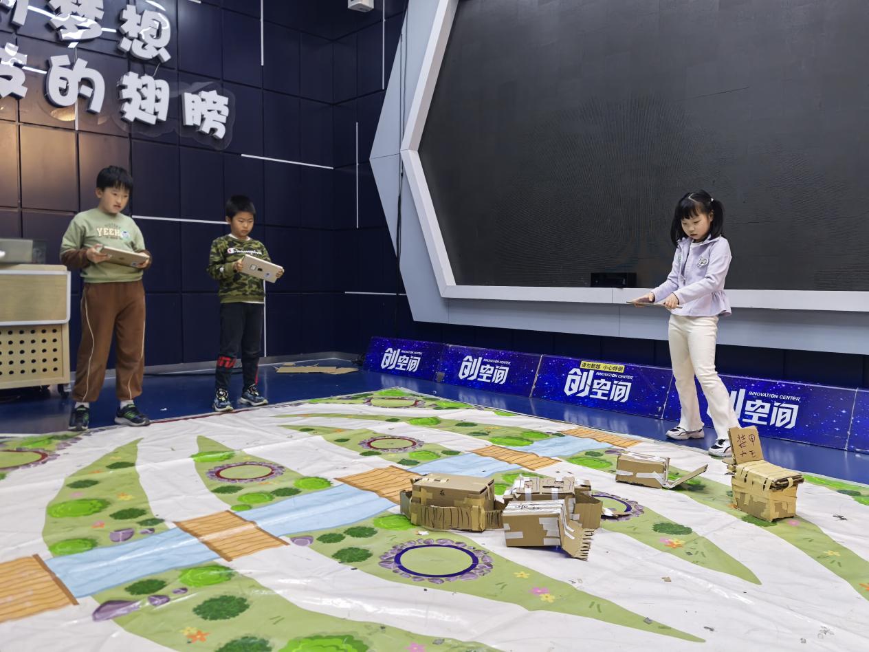 创空间探客工坊内,“机械盒子展览”讲述党的诞生、党的奋斗、统一战线、解放战争、改革开放、强国强军、英雄辈出、璀璨文化、砥砺前行9大主题,通过齿轮传动与光影变化再现历史场景;“边疆守护者”机器人挑战活动中,青少年分红蓝两方操控6台机器人进行“水晶球”攻防任务,在协作中感受守护边疆的责任。蒙空间体验区同步开展“指尖追思·清明寄情”粘土活动,少年儿童通过制作纪念碑、英雄花造型的冰箱贴,以手工形式表达对先烈的追思。
