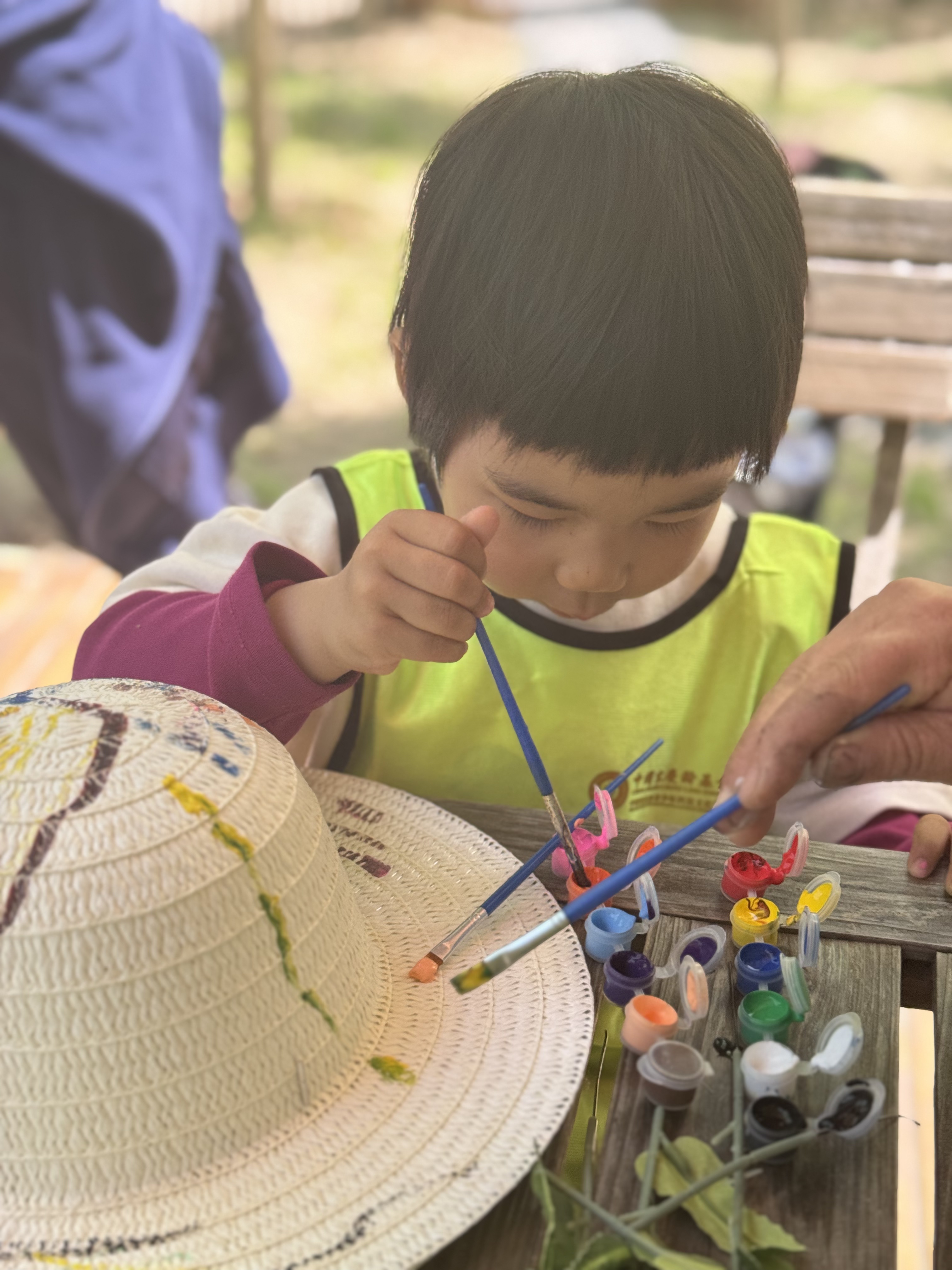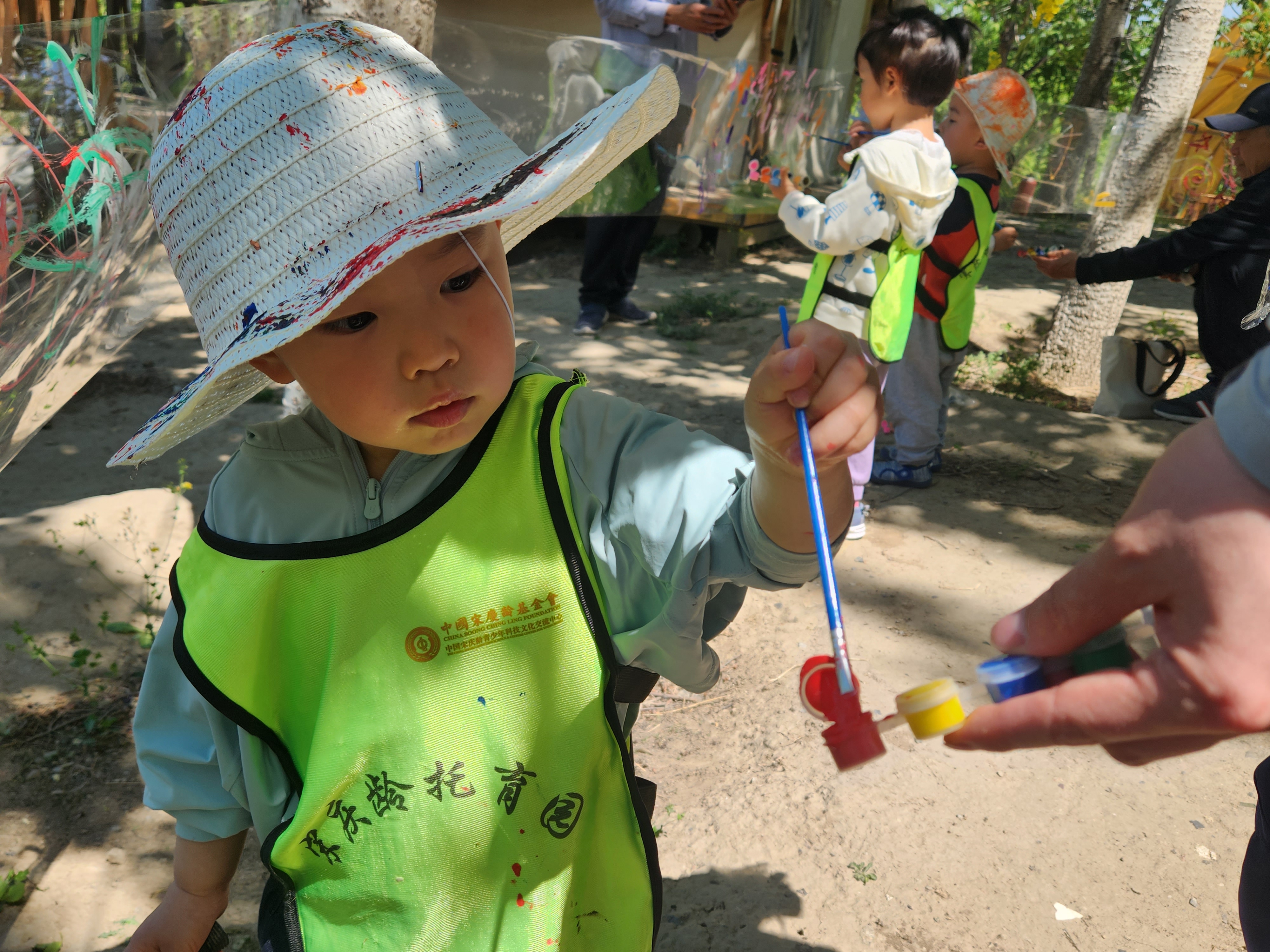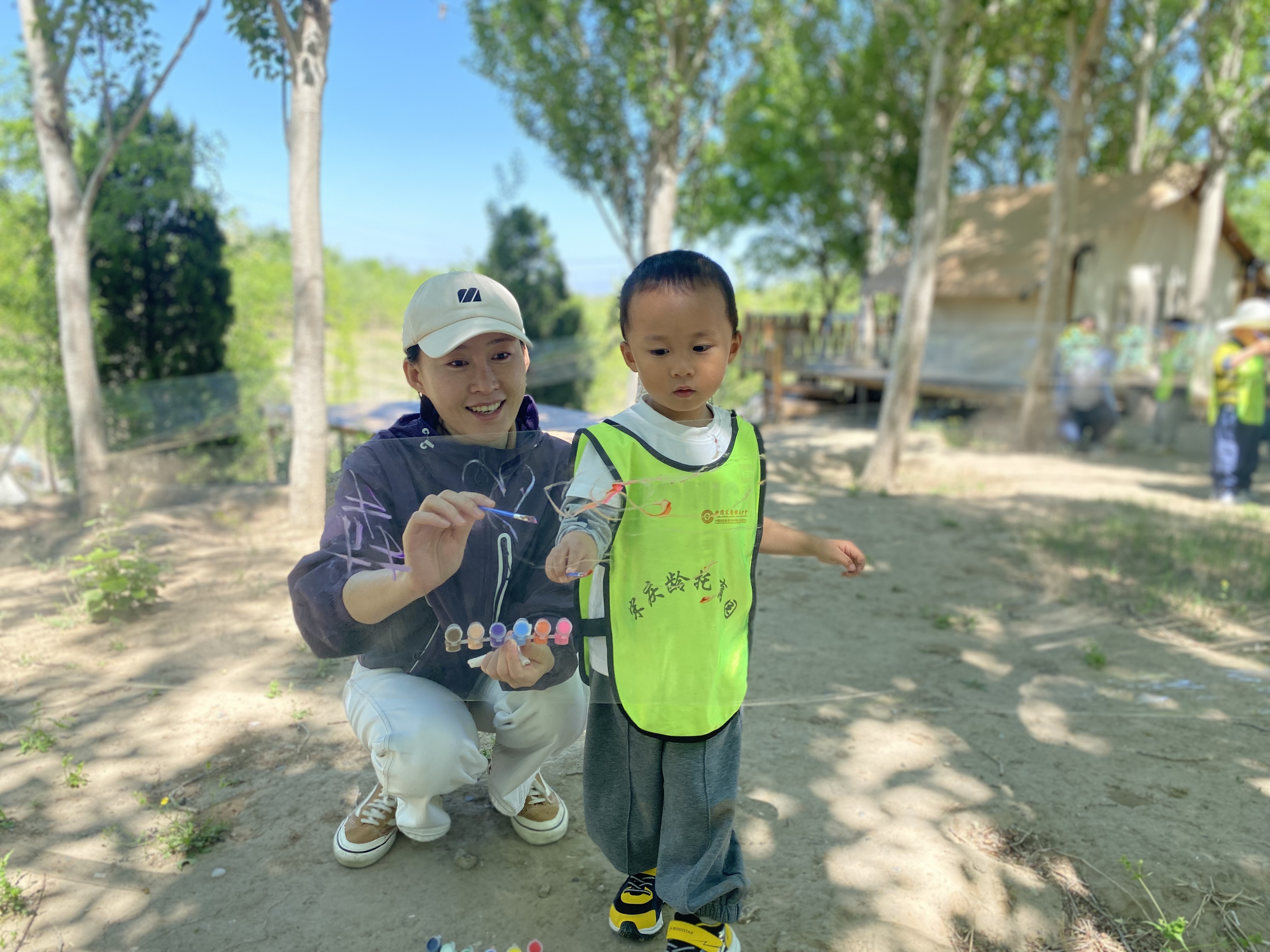 山顶树林间,宝贝们化身“小小画家”,将想象化作斑斓色彩。这场涂鸦不仅点燃了创意之火,尽显出自然大课堂最生动的一面。