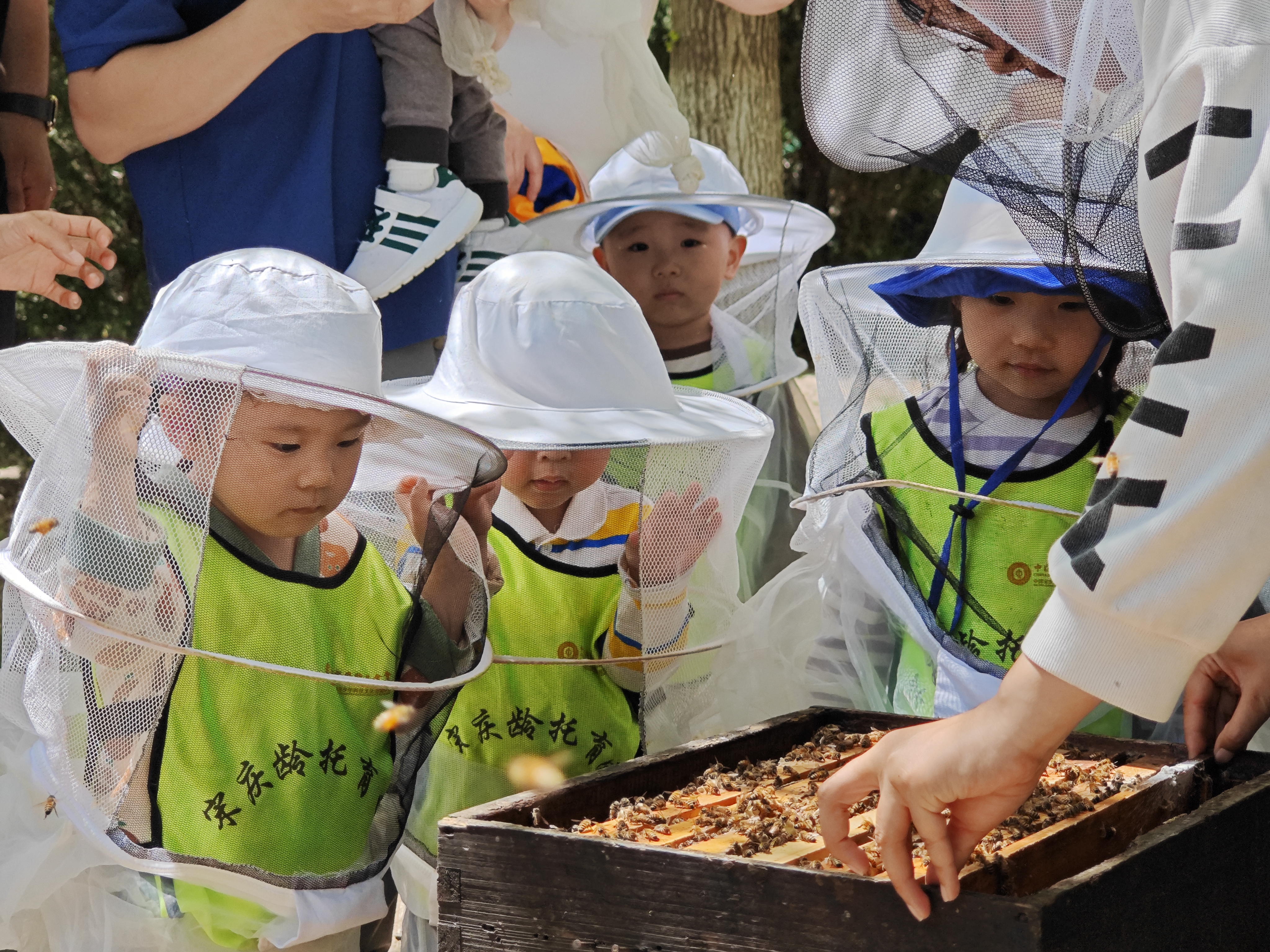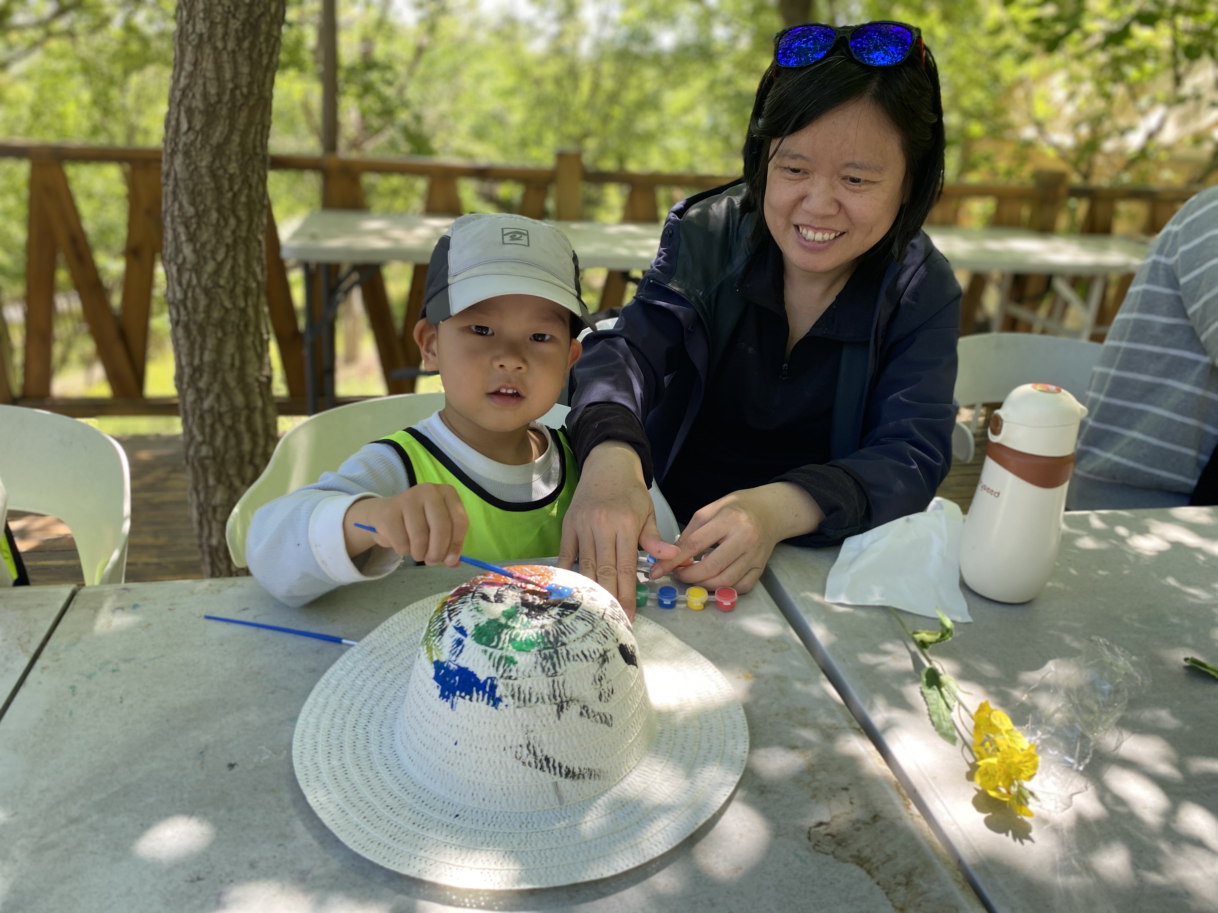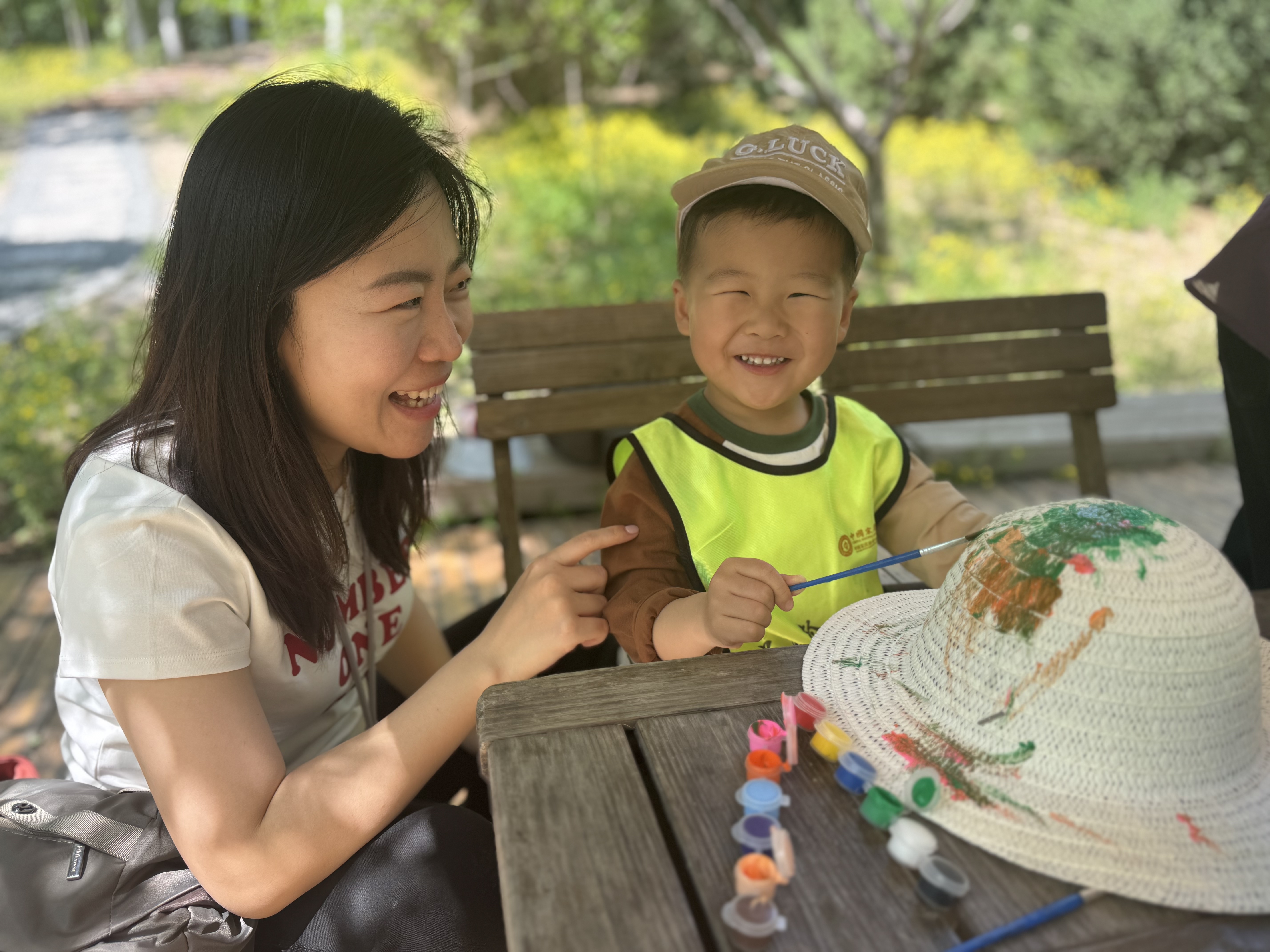 山顶树林间,宝贝们化身“小小画家”,将想象化作斑斓色彩。这场涂鸦不仅点燃了创意之火,尽显出自然大课堂最生动的一面。