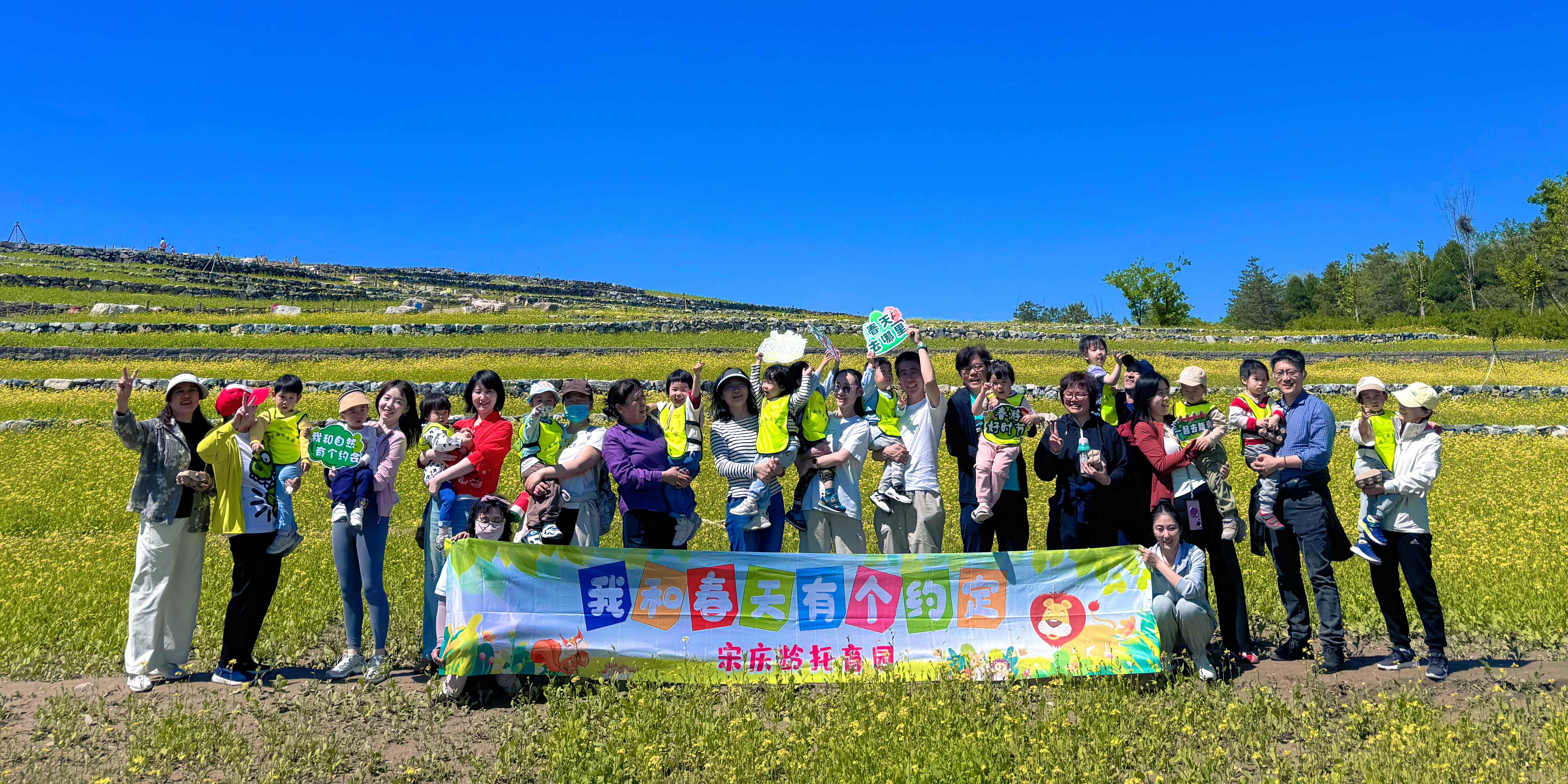 为让童真在自然中绽放,让劳动教育润泽心灵,宋庆龄托育园于2025年4月28日开展了“春暖花开,田间野趣”亲子社会实践活动。家长与宝贝们一起走进自然,在春日里书写一段关于探索、创造与爱的故事。