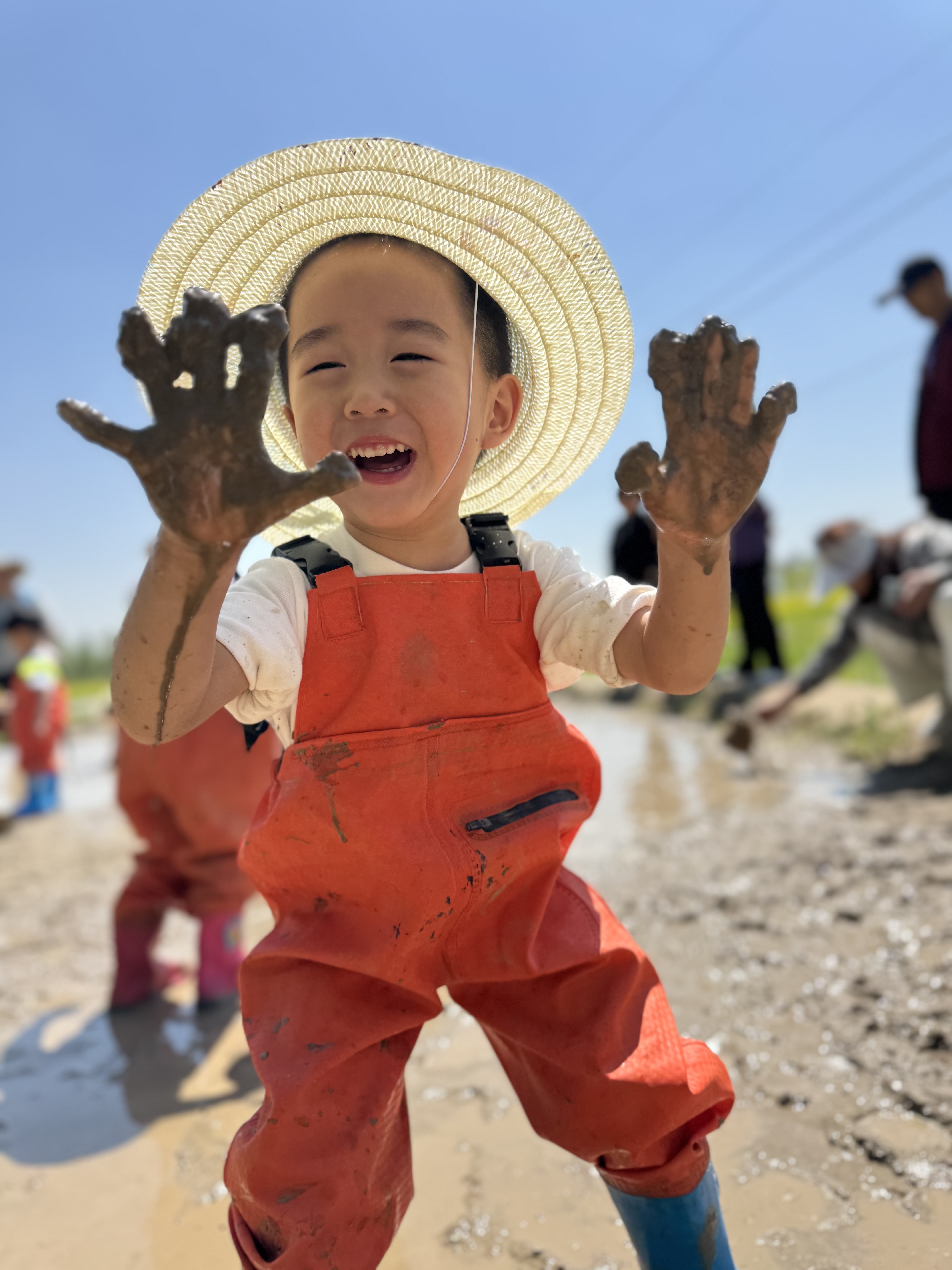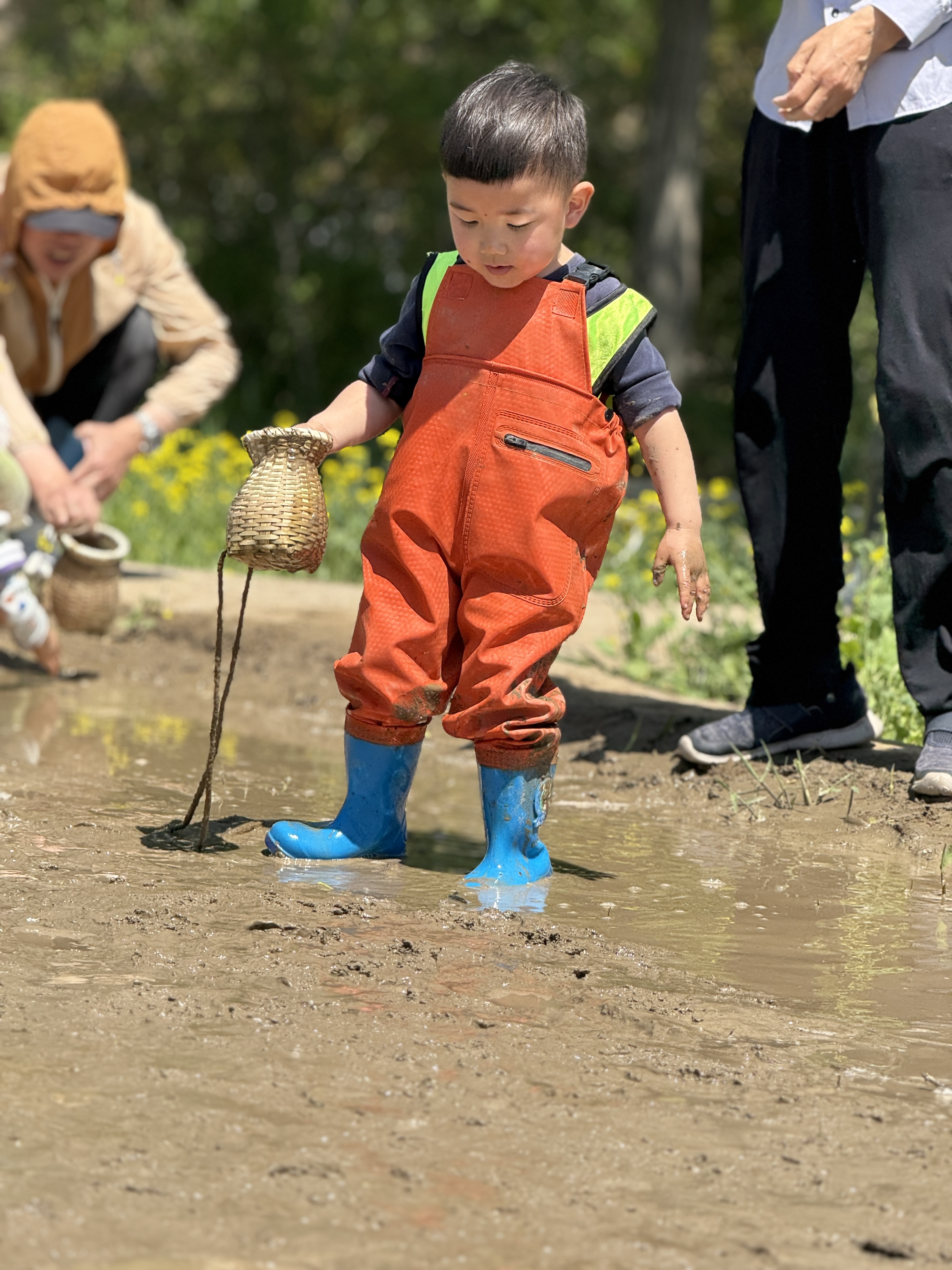 泥塘边,宝贝们化身“小小渔夫”,与泥鳅展开“较量”。泥水飞溅,欢笑飞扬,抓到的泥鳅成为“斗智斗勇”中最珍贵的战利品。
